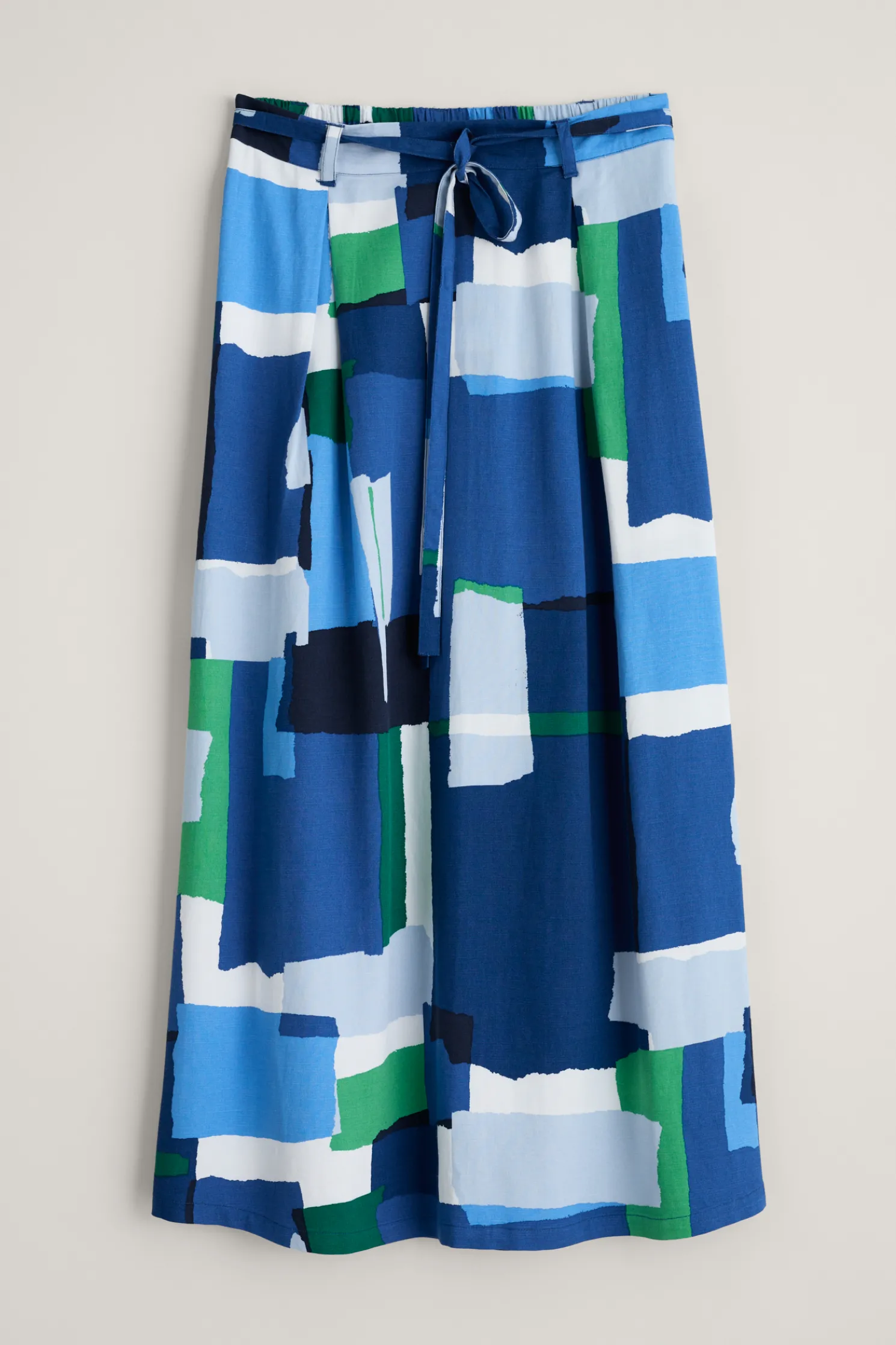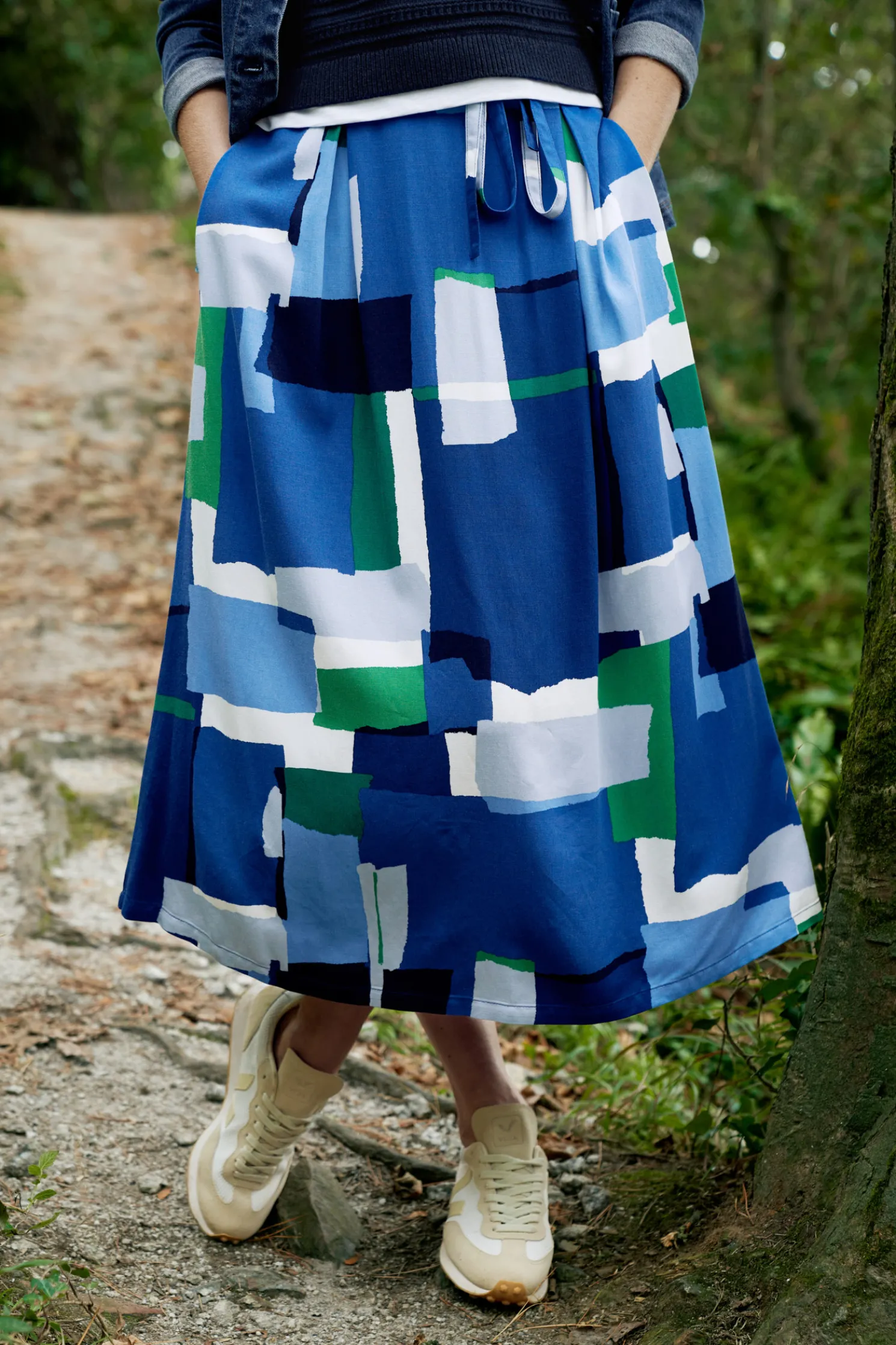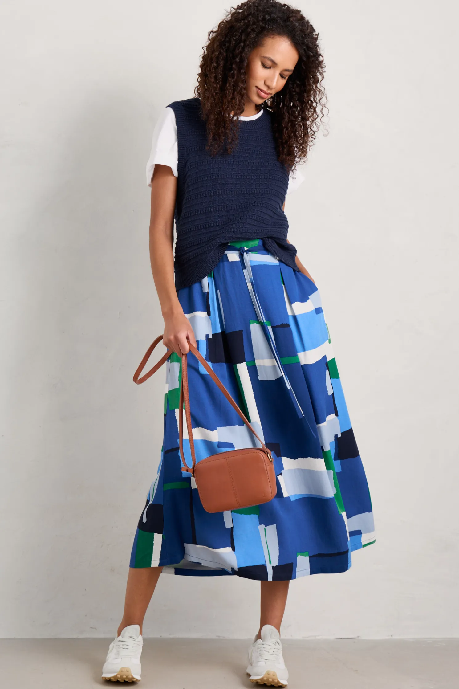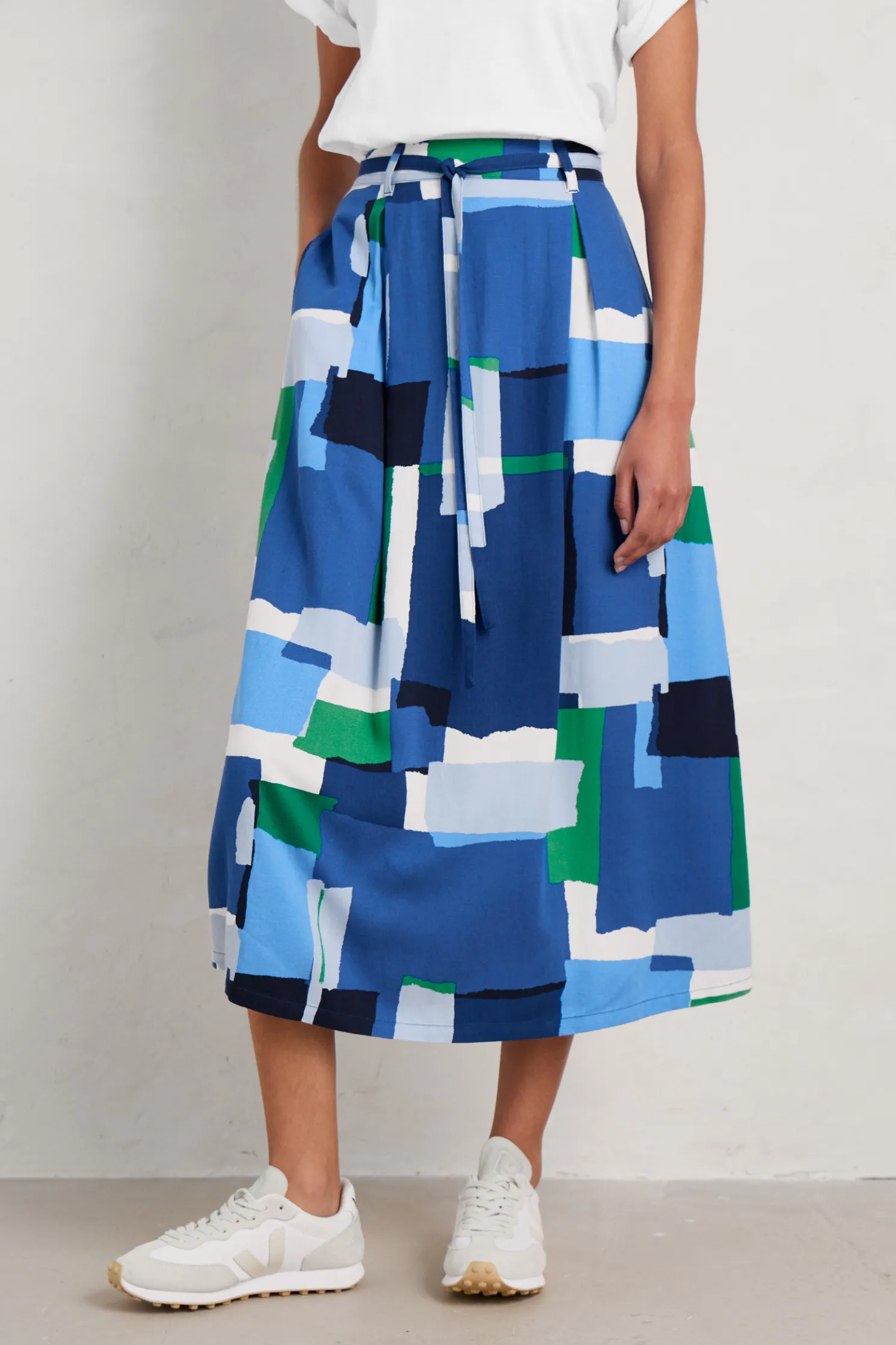 A Tie-Front Printed Skirt With A Full Shape And Pockets. Box Pleats At The Front And An Elasticated Back Give A Lovely Movement To The Supple Fabric And Handcrafted Seasalt Print.