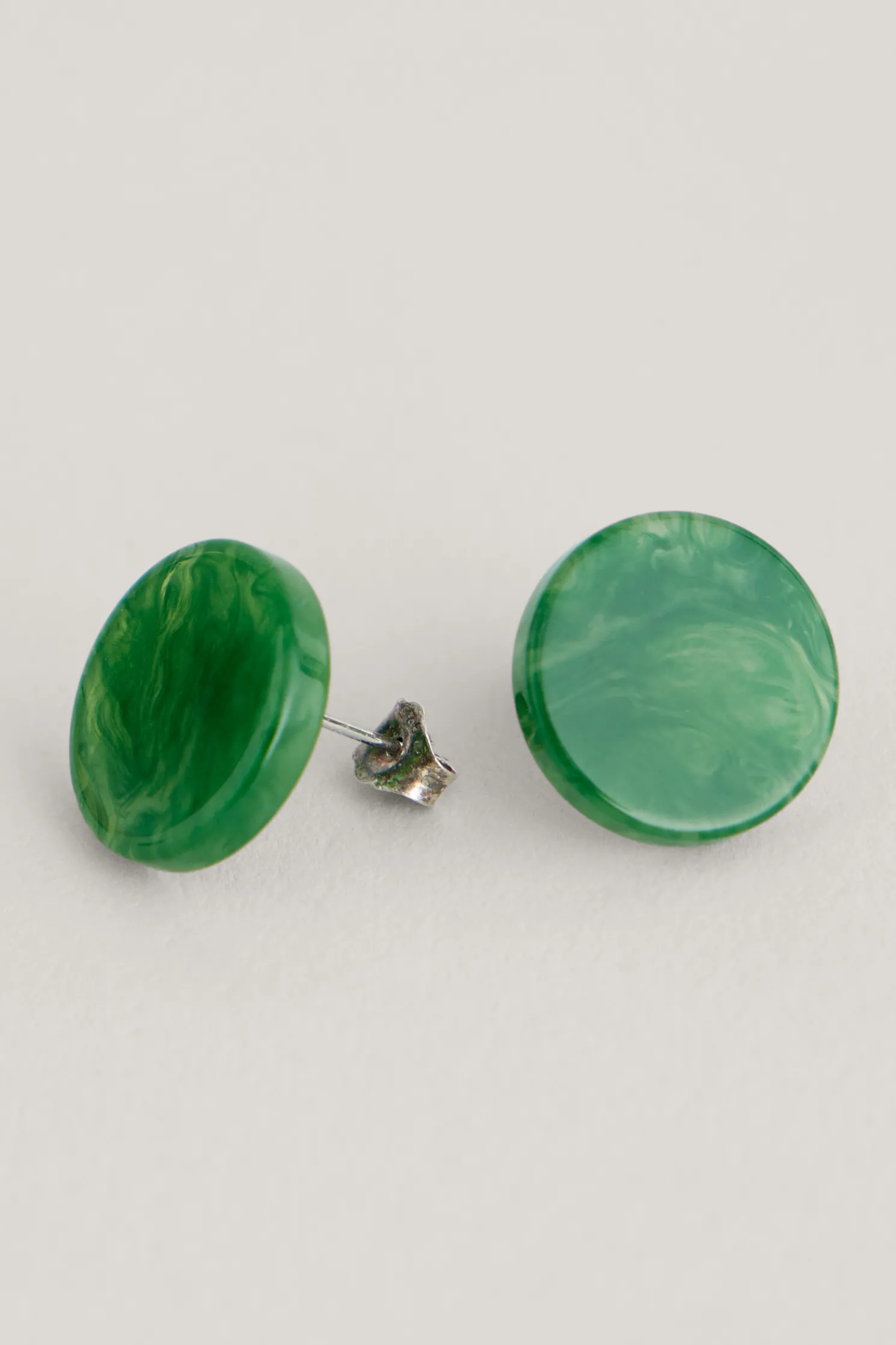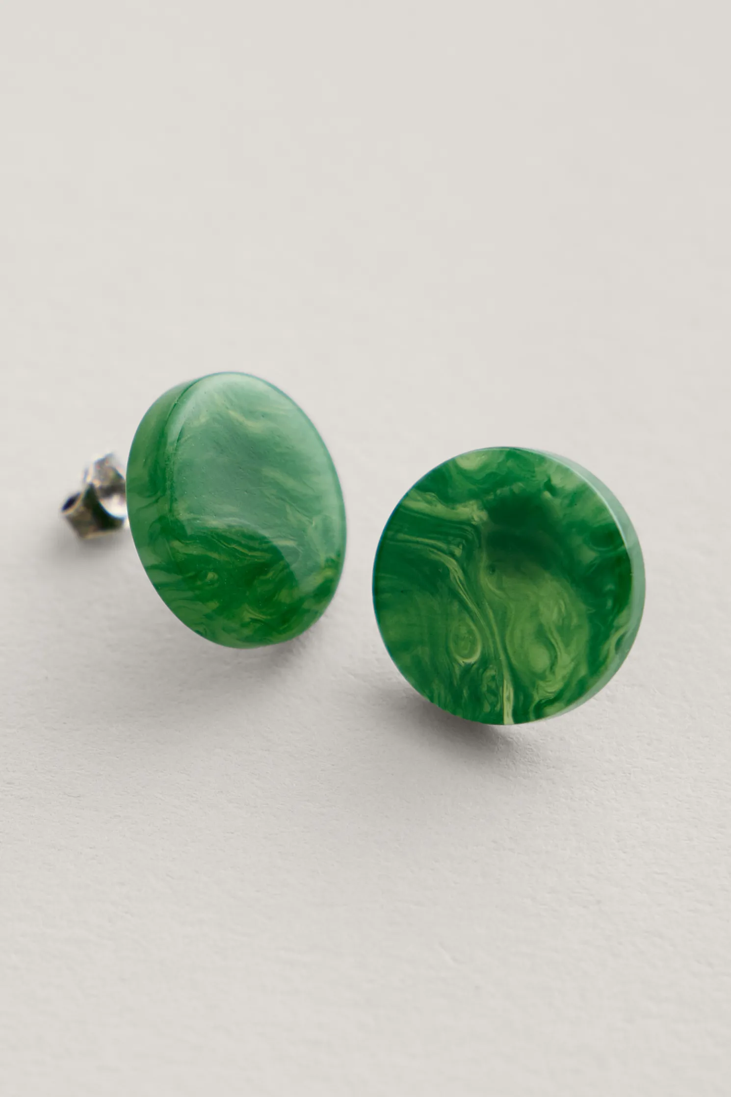 Smooth, Round, Marbled Resin Studs With A Marble Effect. An Everyday Piece To Add A Little Colour To Any Outfit, That Pairs Effortlessly With This Season’s Clothing.