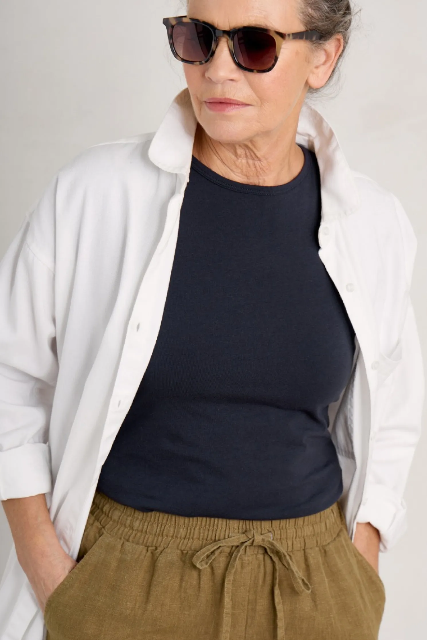 A Slim Fit T-Shirt Made From A Blend Of Breathable Gots-Certified Organic Cotton With A Touch Of Stretch. A Versatile And Effortless Layer Which We’Ve Styled Under Our Linen-Blend Suits For Summer.