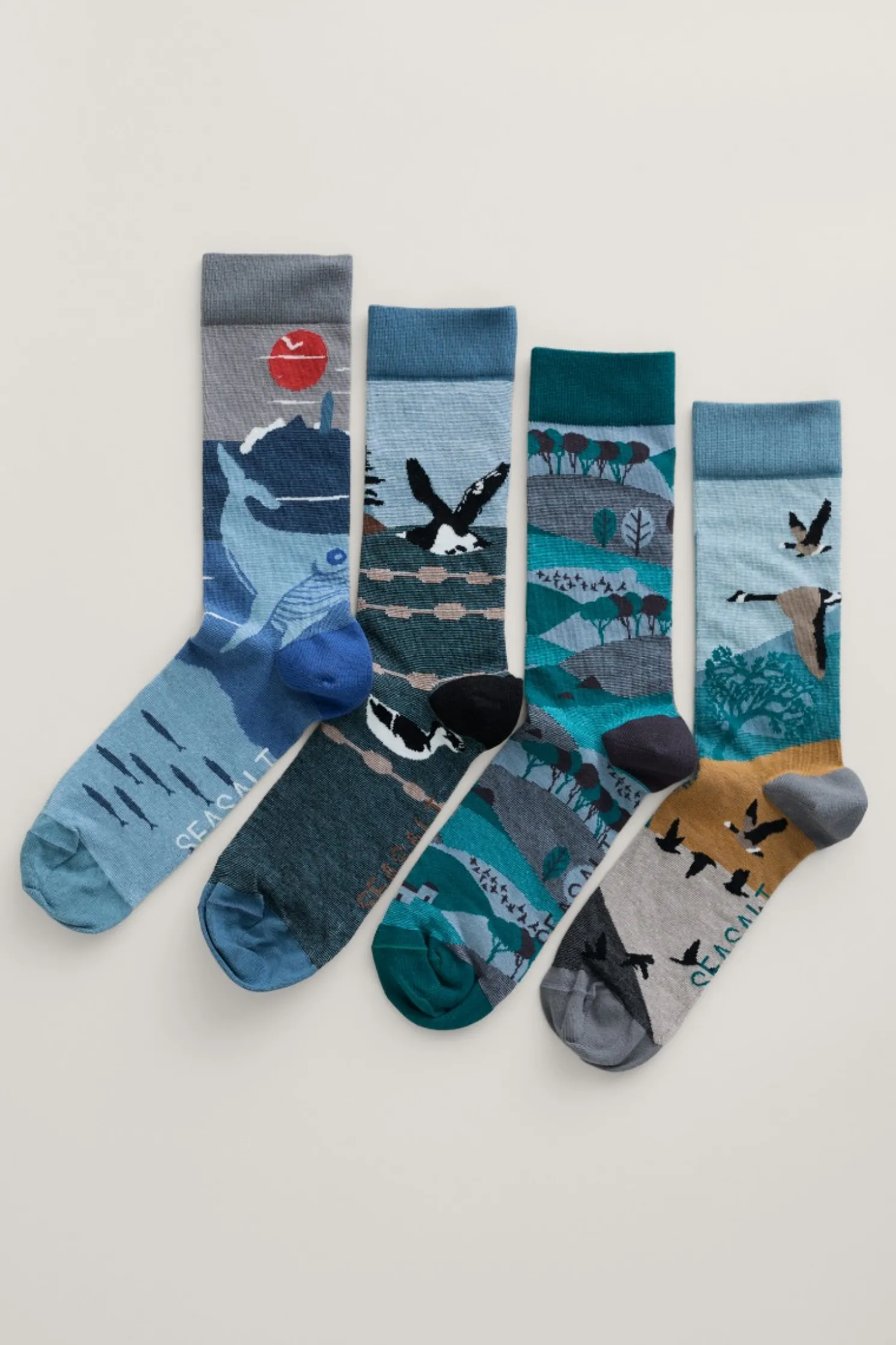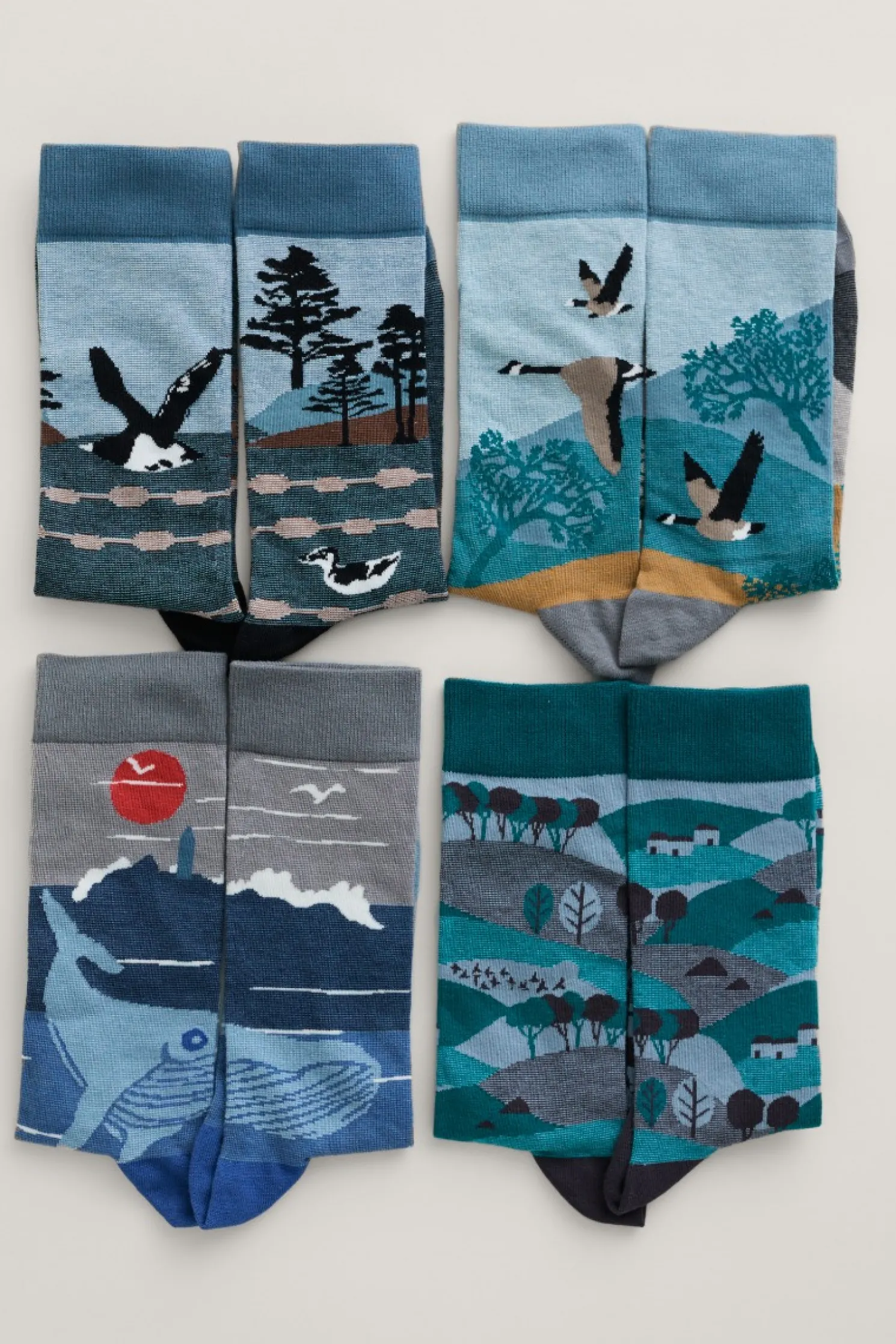 From Cornwall With Love… A Beautifully Presented Box With Four Pairs Of Soft Organic Cotton Men’s Socks Featuring Nautical Cornish Scenes.