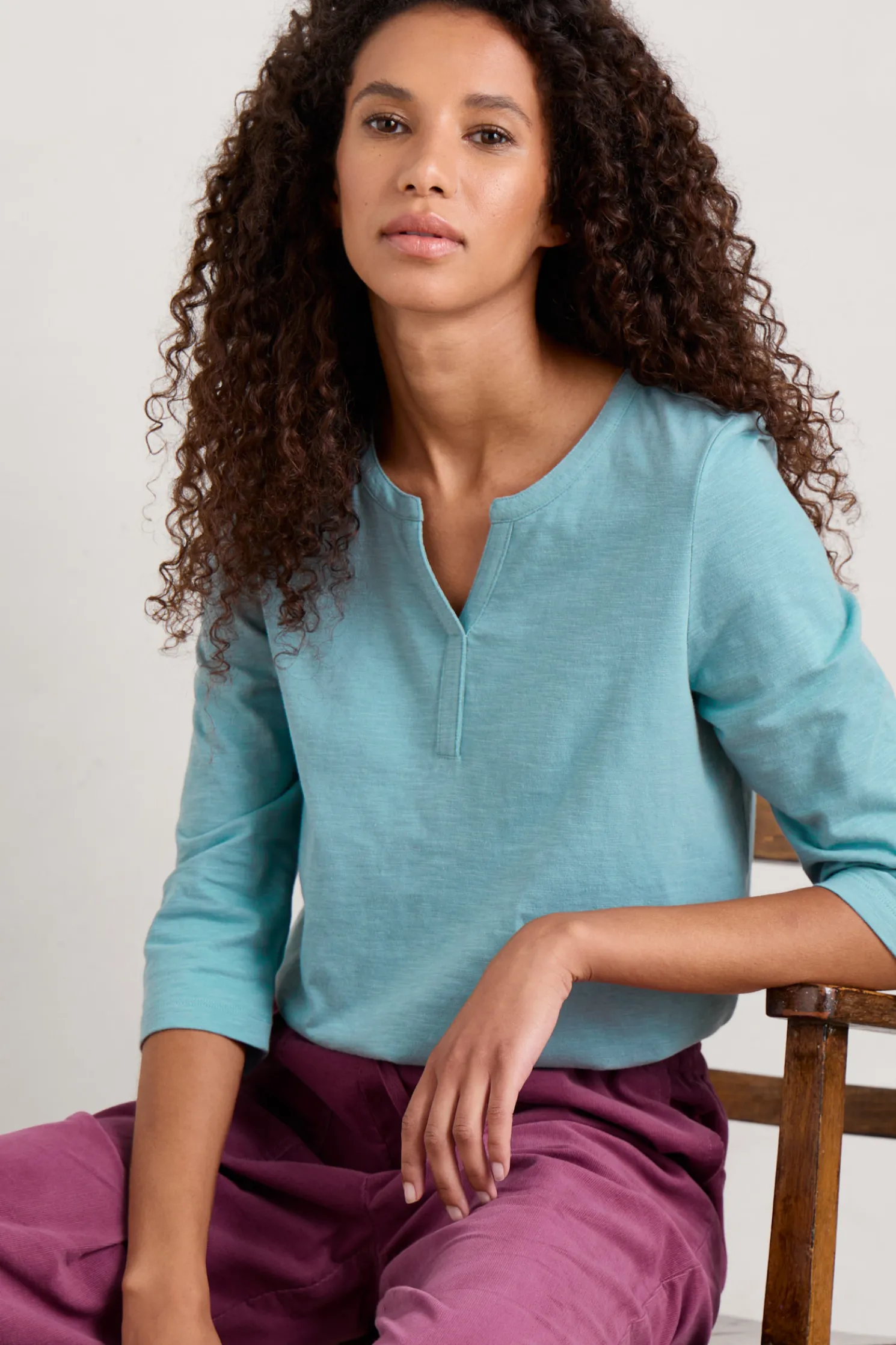 A Wardrobe Essential, The Carlyon Top Has A Relaxed Fit, 3/4 Sleeves And Simple Notch Neckline. Made From A Soft Organic Cotton Jersey And A Selection Of Cornish Colours. Pair With Shorts Or Jeans To Enjoy All Year Round.