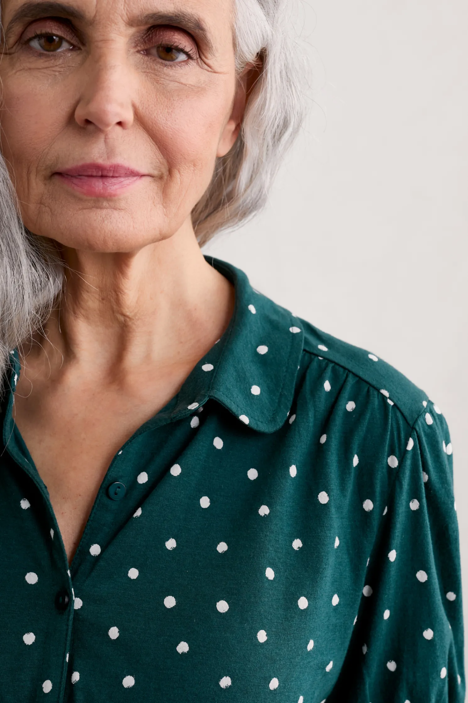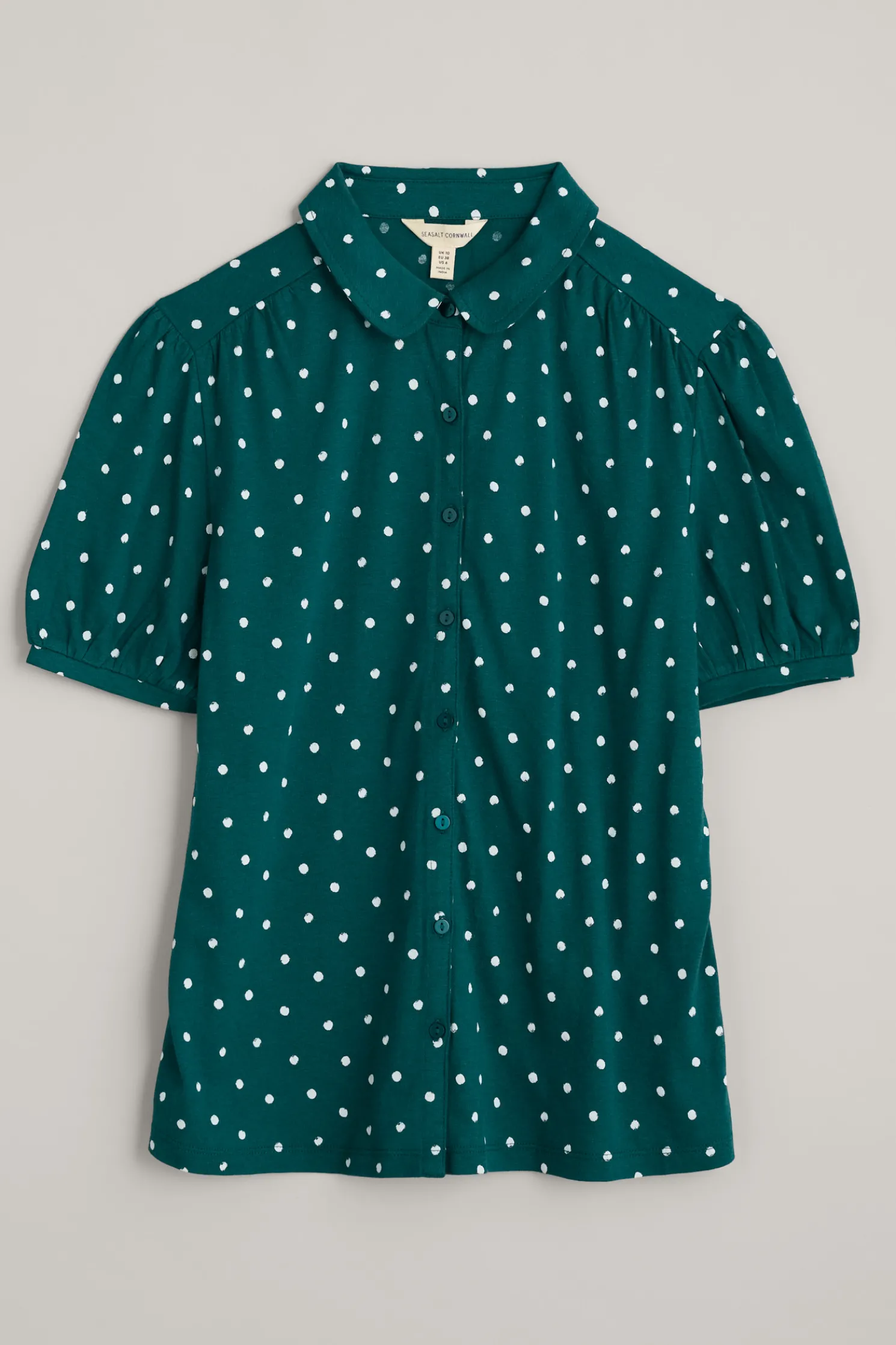 A Joyful Summer Blouse In Soft Organic Cotton And Silky Modal Blend Jersey, With Little Gathers At The Shoulder And Sleeve For Gentle Volume. A Breathable, Drapey Style That’s Perfect For Sunshine Adventures.