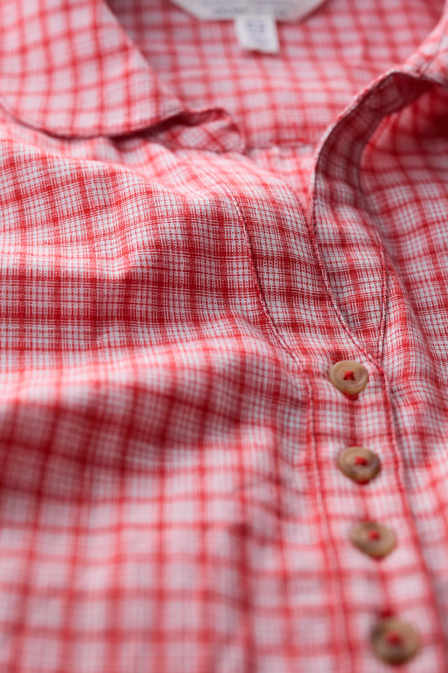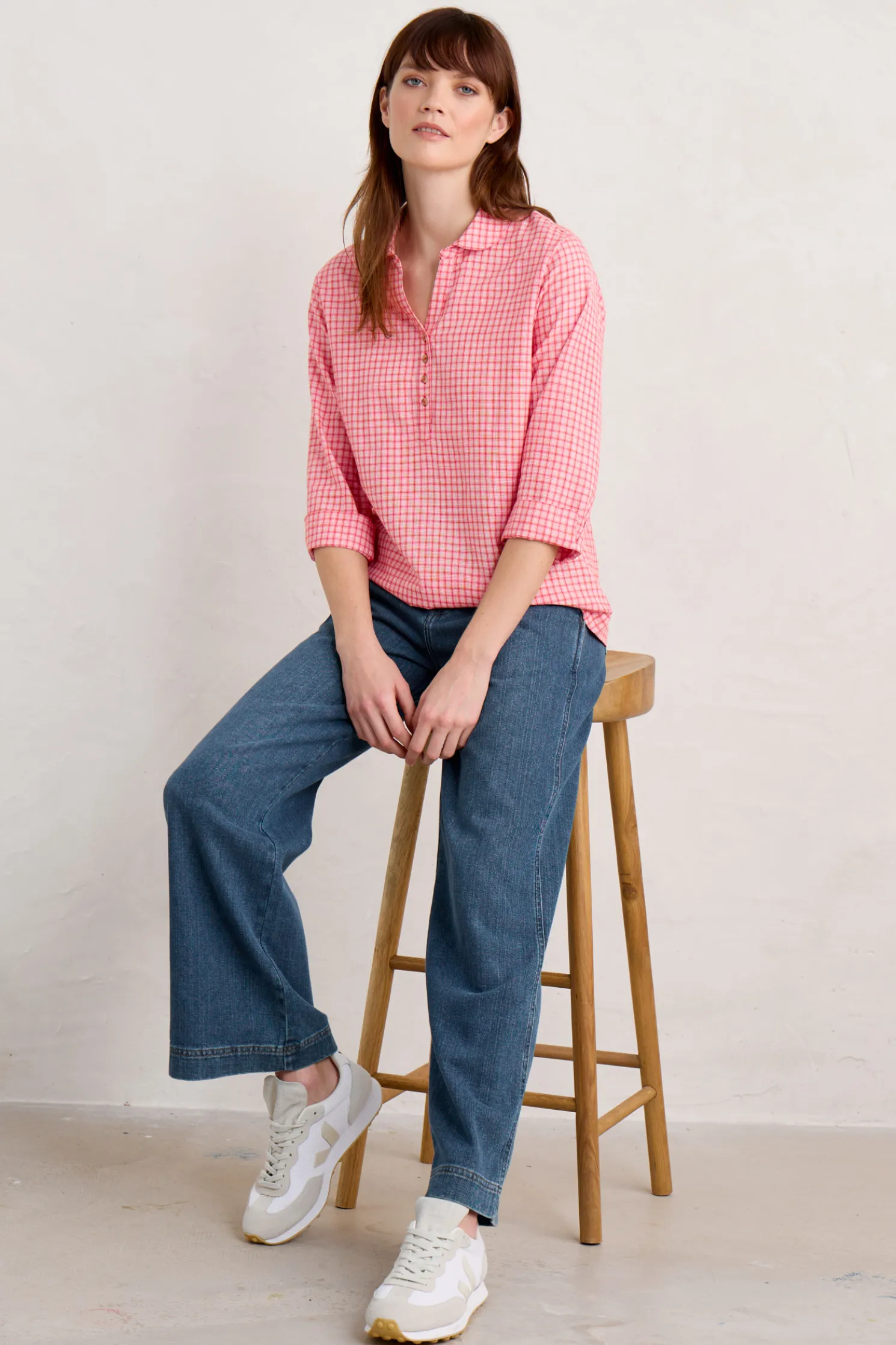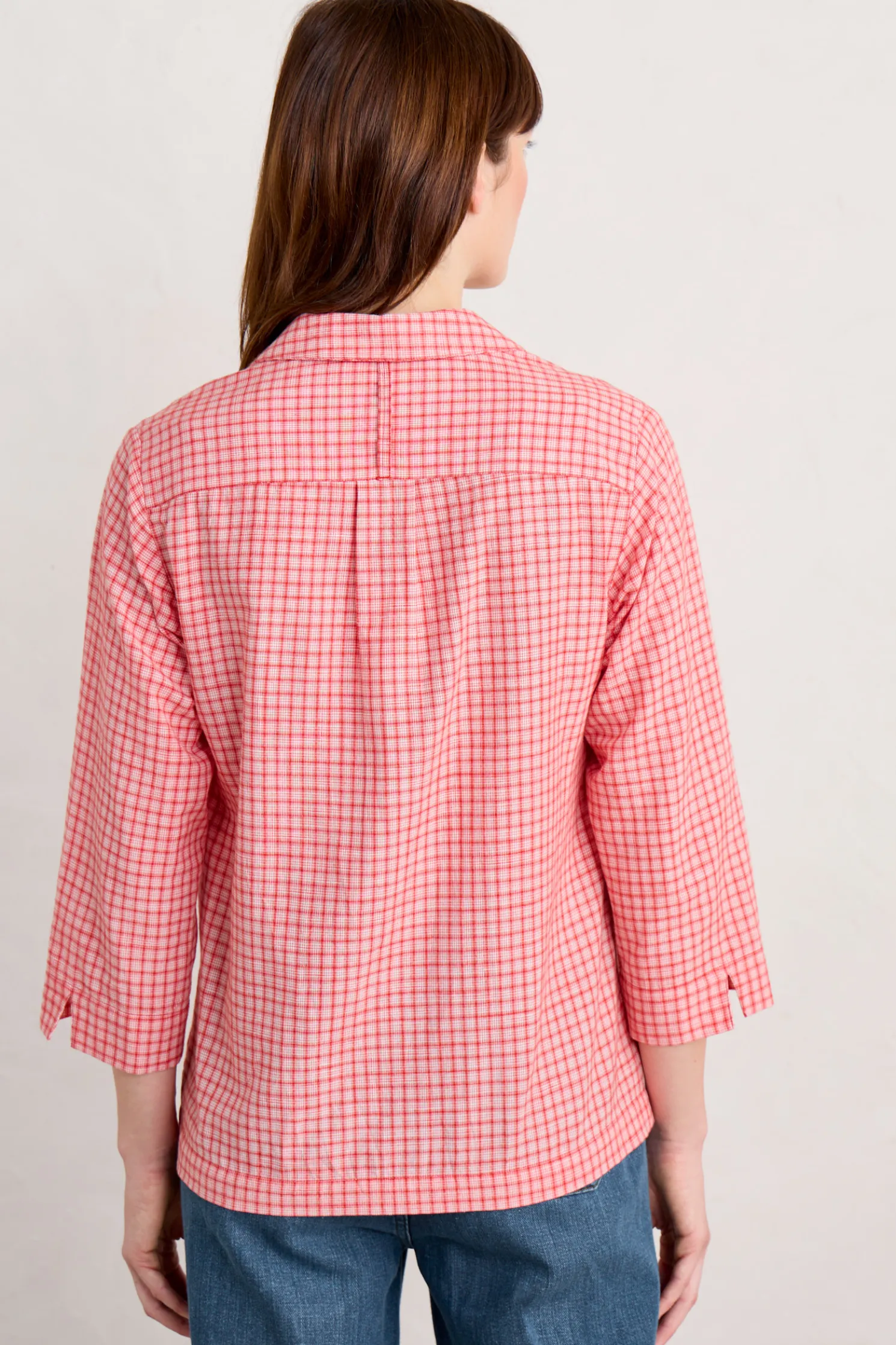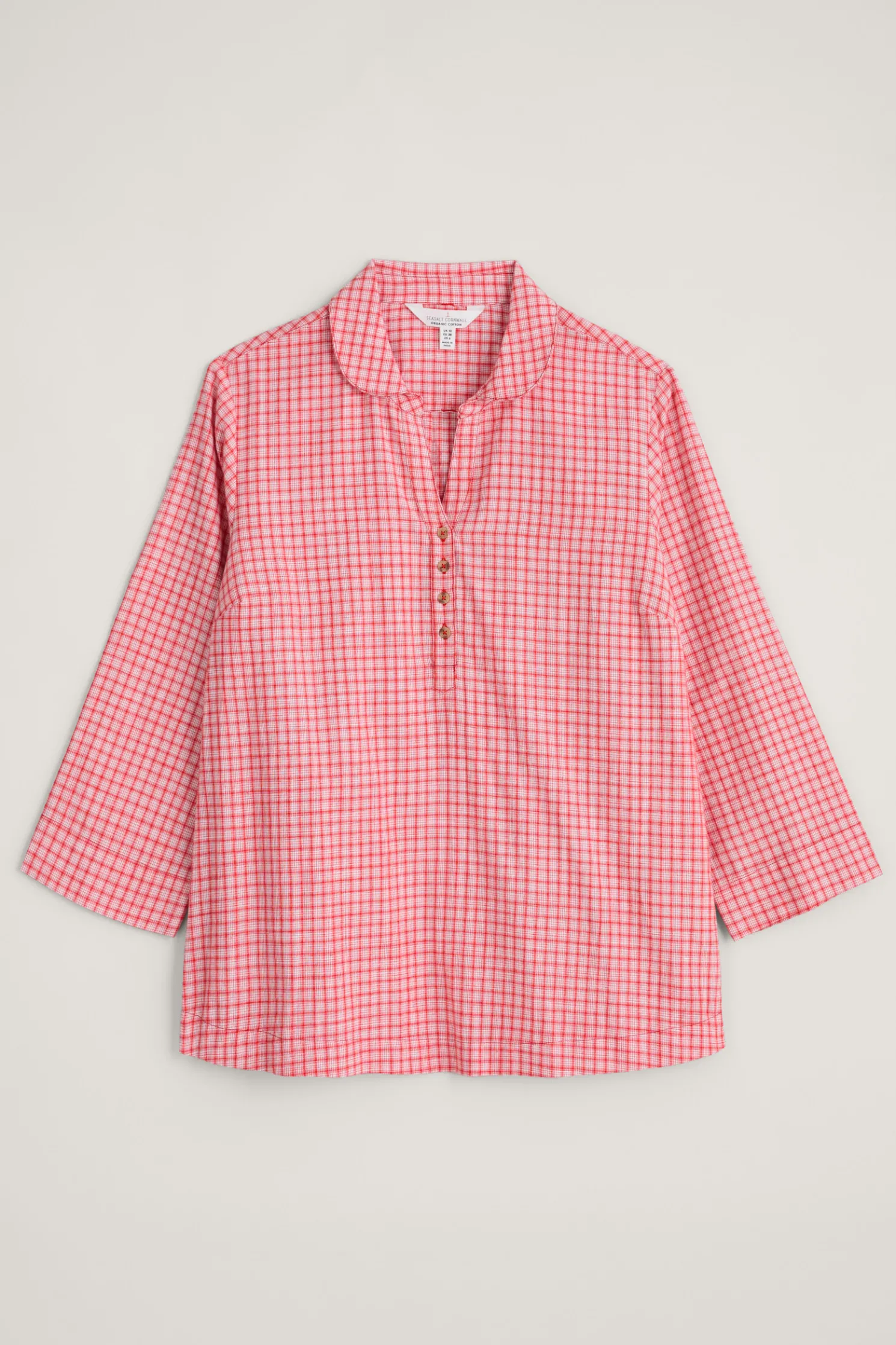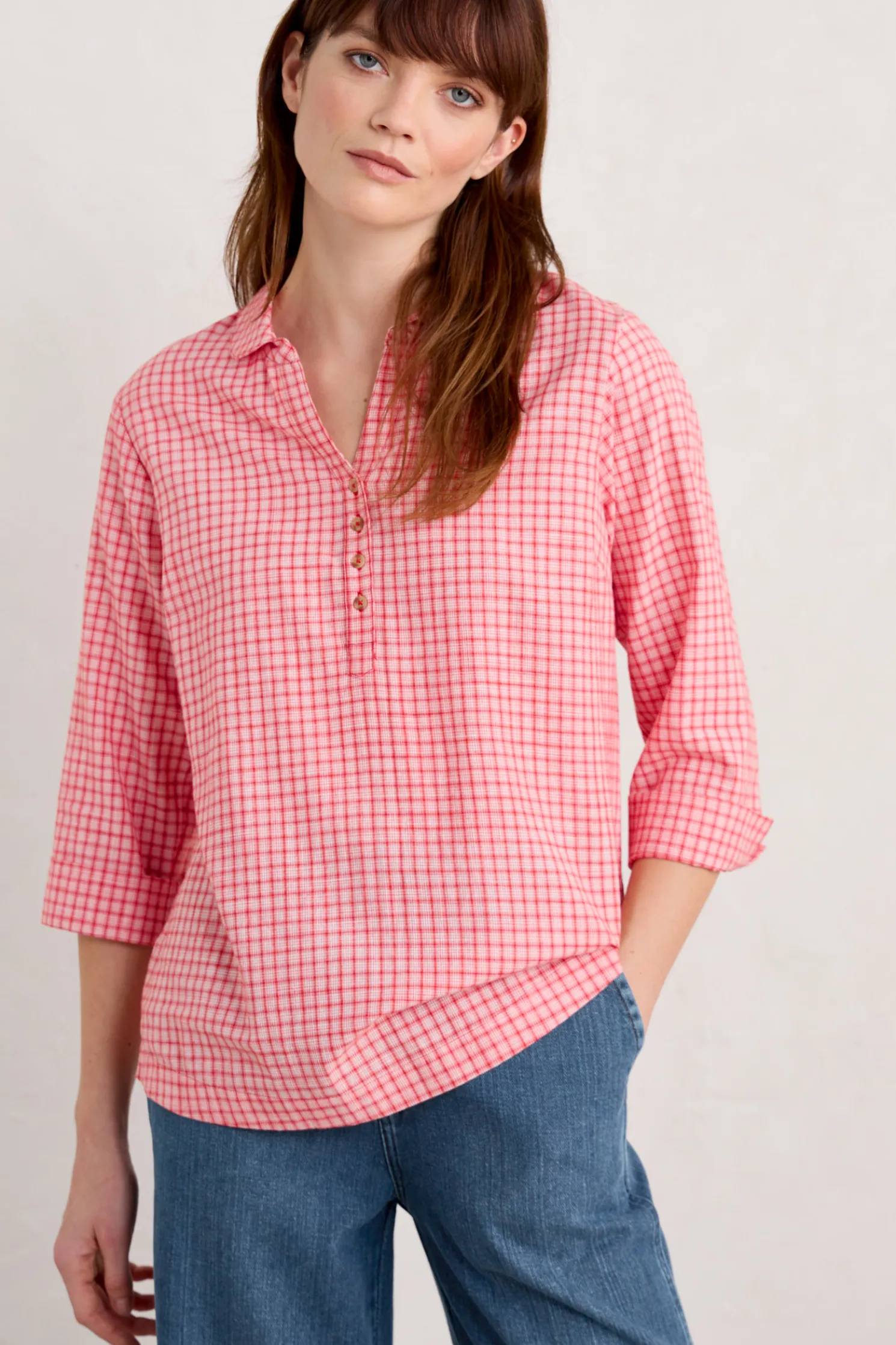 A Pure Cotton Shirt In A Yarn-Dyed Check, Where Every Thread Is Coloured Before Being Woven Into The Design For Depth And Texture. It Has A Notch Neckline With An Elegant Collar, Finished With 3/4 Length Sleeves.