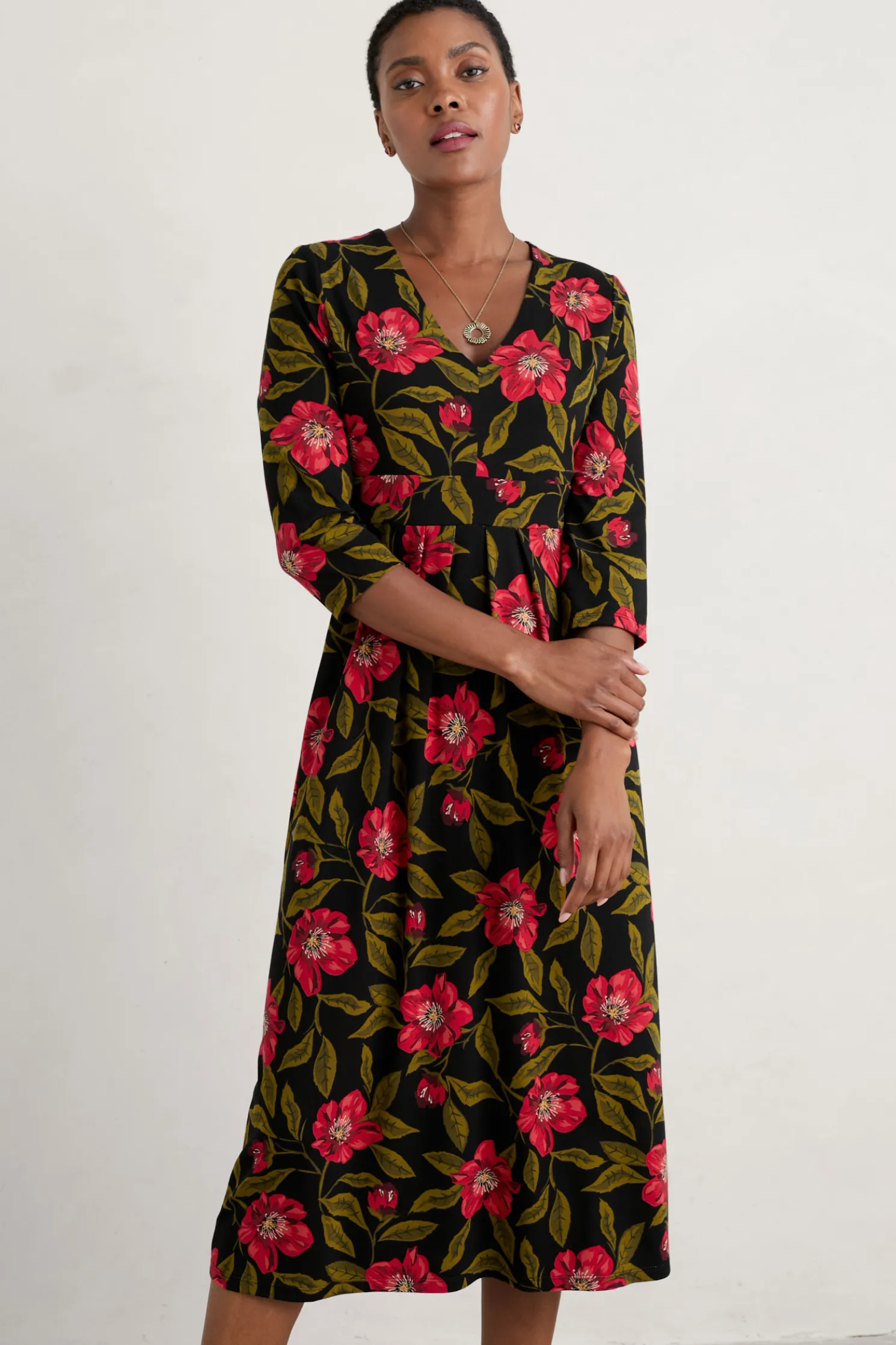 A Simple Dress With A Streamlined Shape And Contemporary V-Neck. Made From A Jersey Blend Of Bamboo-Derived Viscose And Organic Cotton, This Style Has Small Pleats Just Under The Bust To Give A Beautifully Skimming Fit.