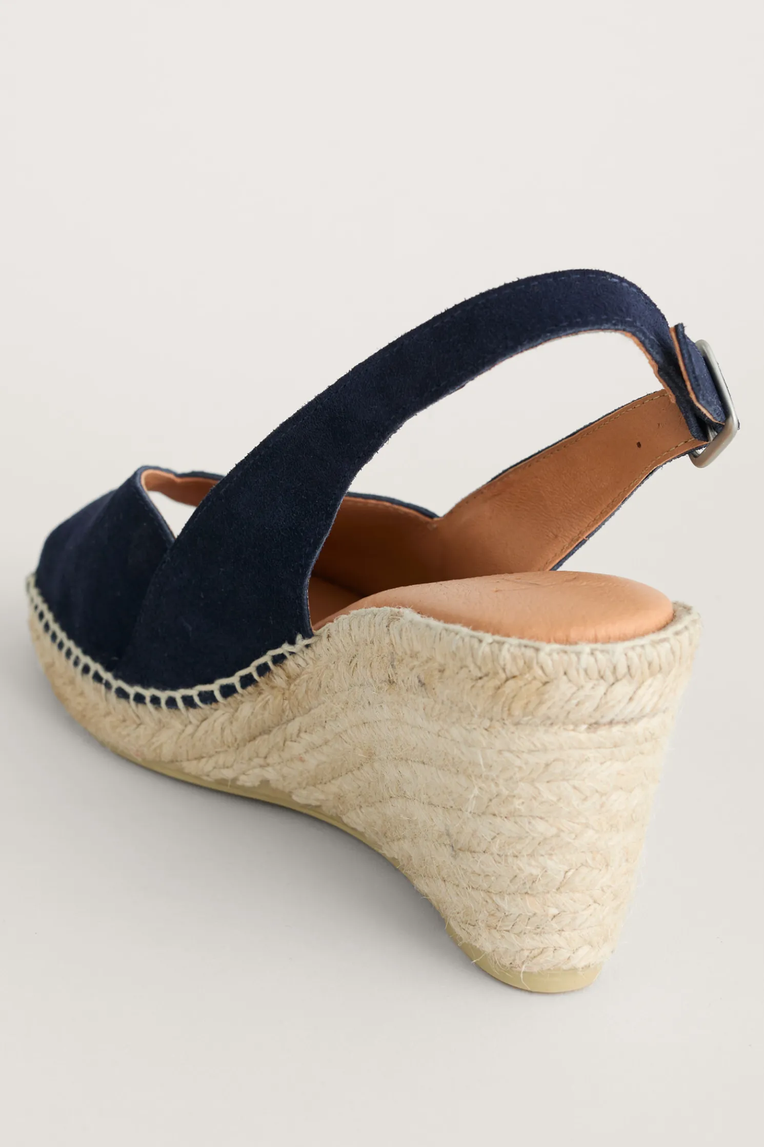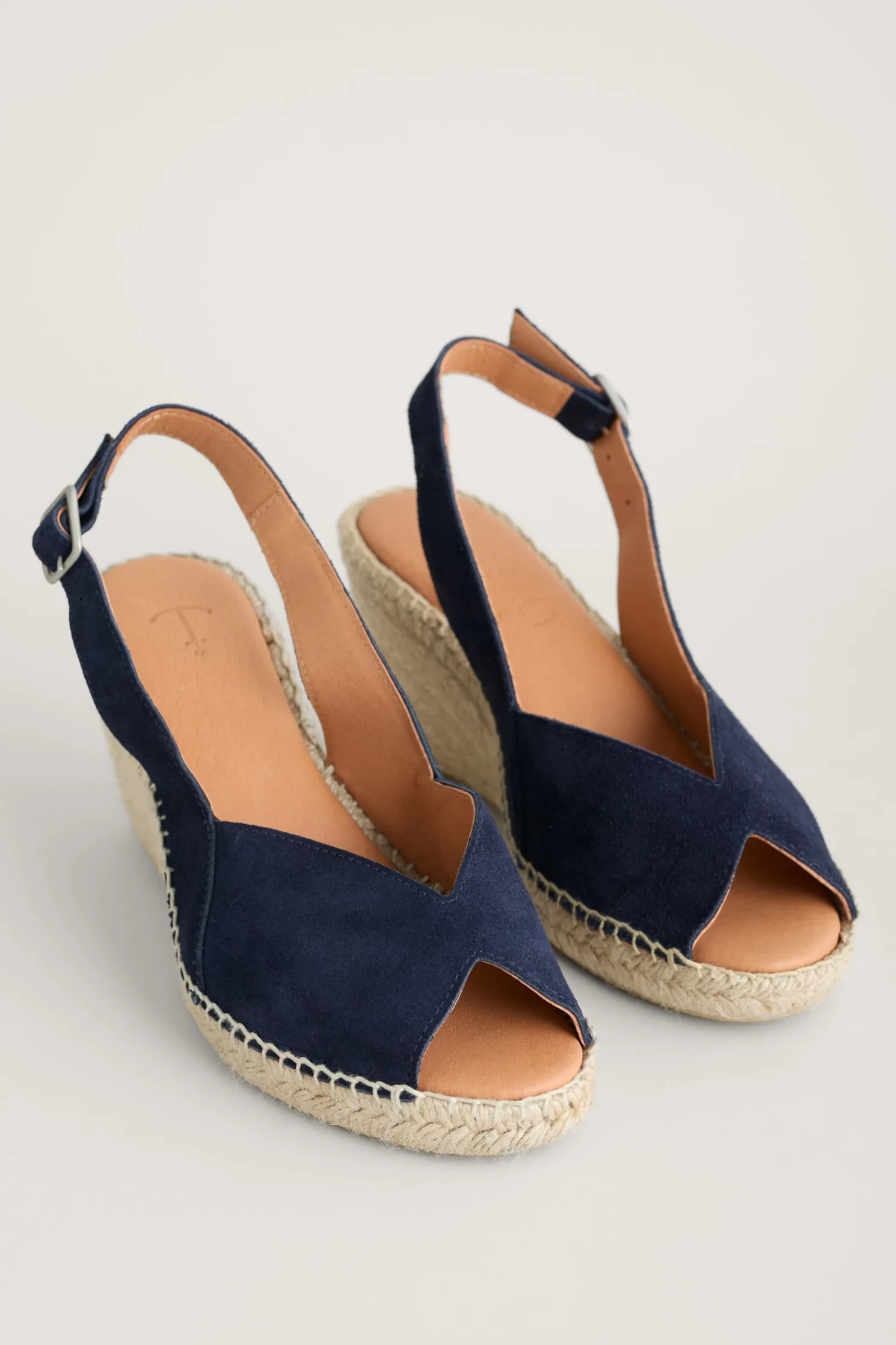 Simple Suede Peep Toe Wedges With An Elegant Wedge Heel, Which Is Wrapped In Jute Braiding Inspired By Traditional Espadrilles. The Perfect Height For Comfort And Style At Summer Soirees And Special Celebrations.