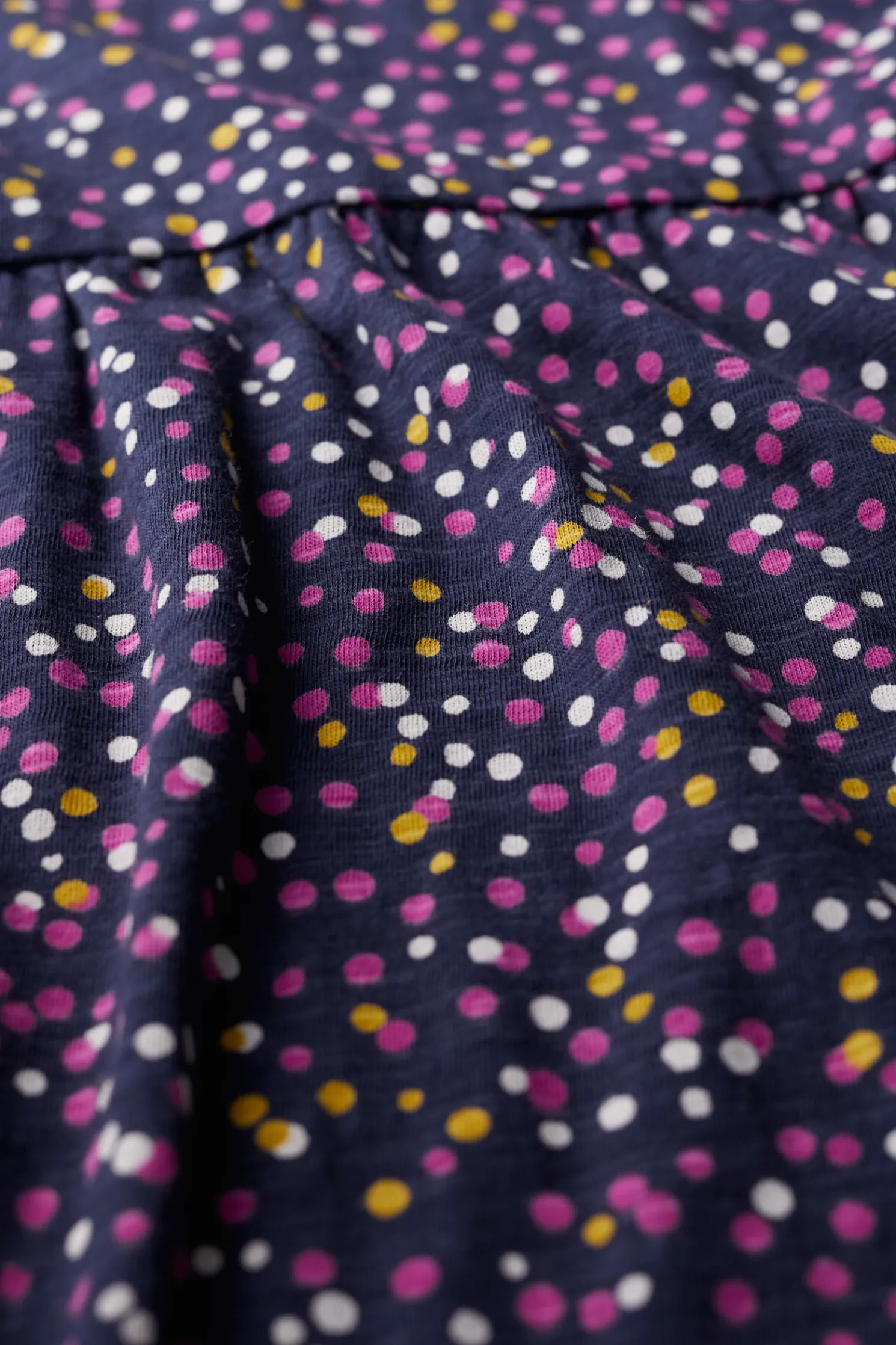 The Tiered, A-Line Shape Of This Above-The-Knee Dress Is Given A Gentle Swing With Soft Gathers And Breathable Organic Cotton Jersey. The Easy-To-Wear Print Is Perfect For Summer Days By The Sea, And Can Be Styled With Tights And Knitwear As The Weather Cools.