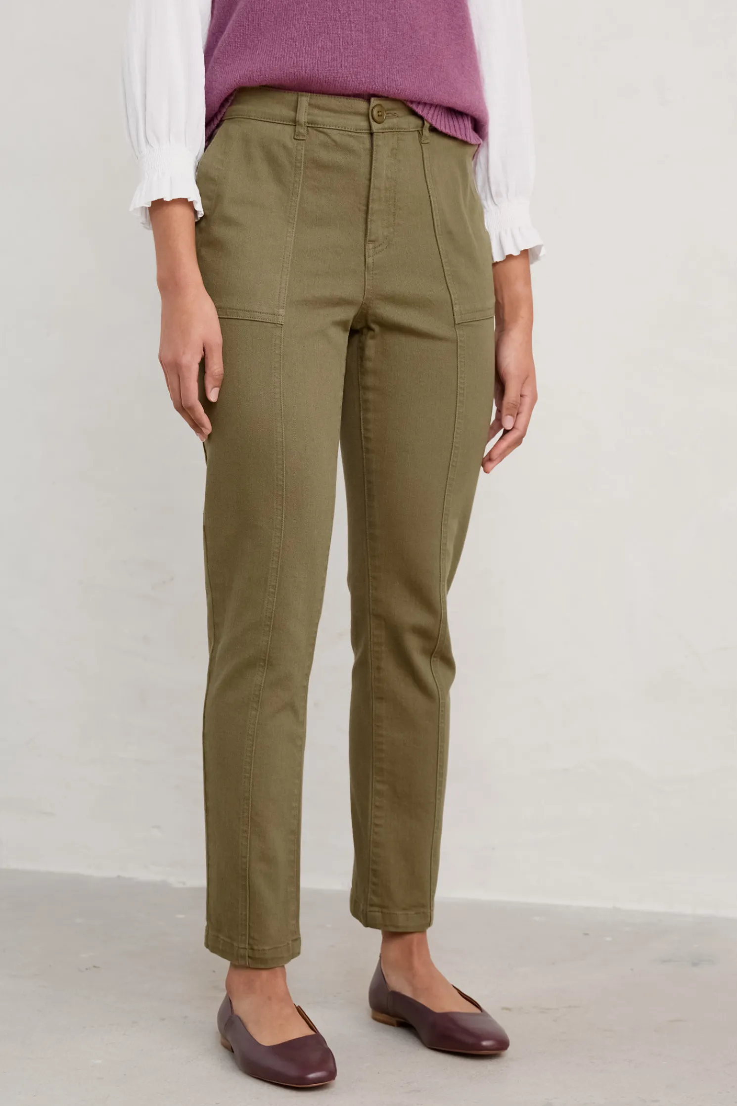 Slim Leg Trousers Are The Foundation For So Many Outfits. This Pair Has Subtle Statement Seams Up The Front And Back Legs, And Workwear-Inspired Generous Patch Pockets. Wear Rolled At The Ankle For A More Casual Look.