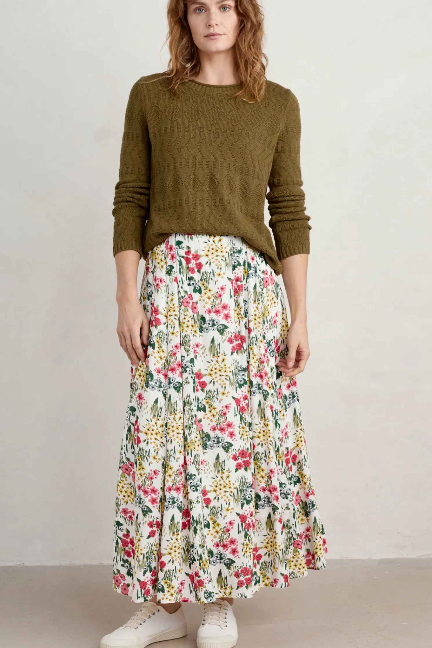 An Ankle Length Skirt In A Straight Fit, With Pleats At The Front To Give A Skimming Shape And Subtle Volume. Perfect For Dressing Up Or Down, On Days When You To Add A Bit Of Easy Print And Elegant Movement To Your Outfit.