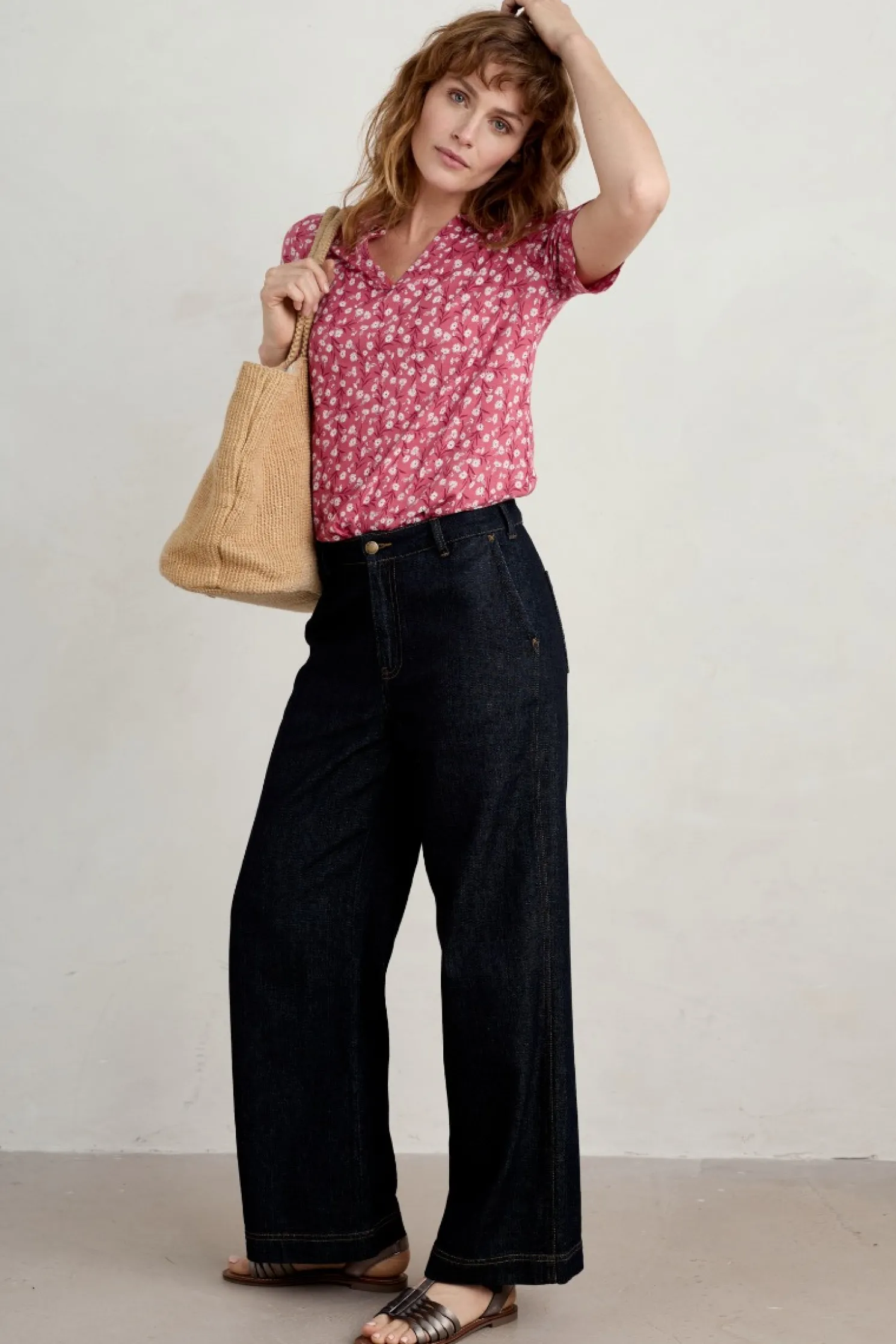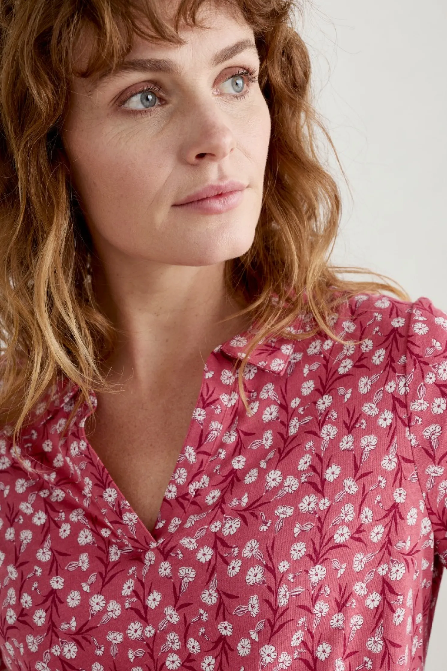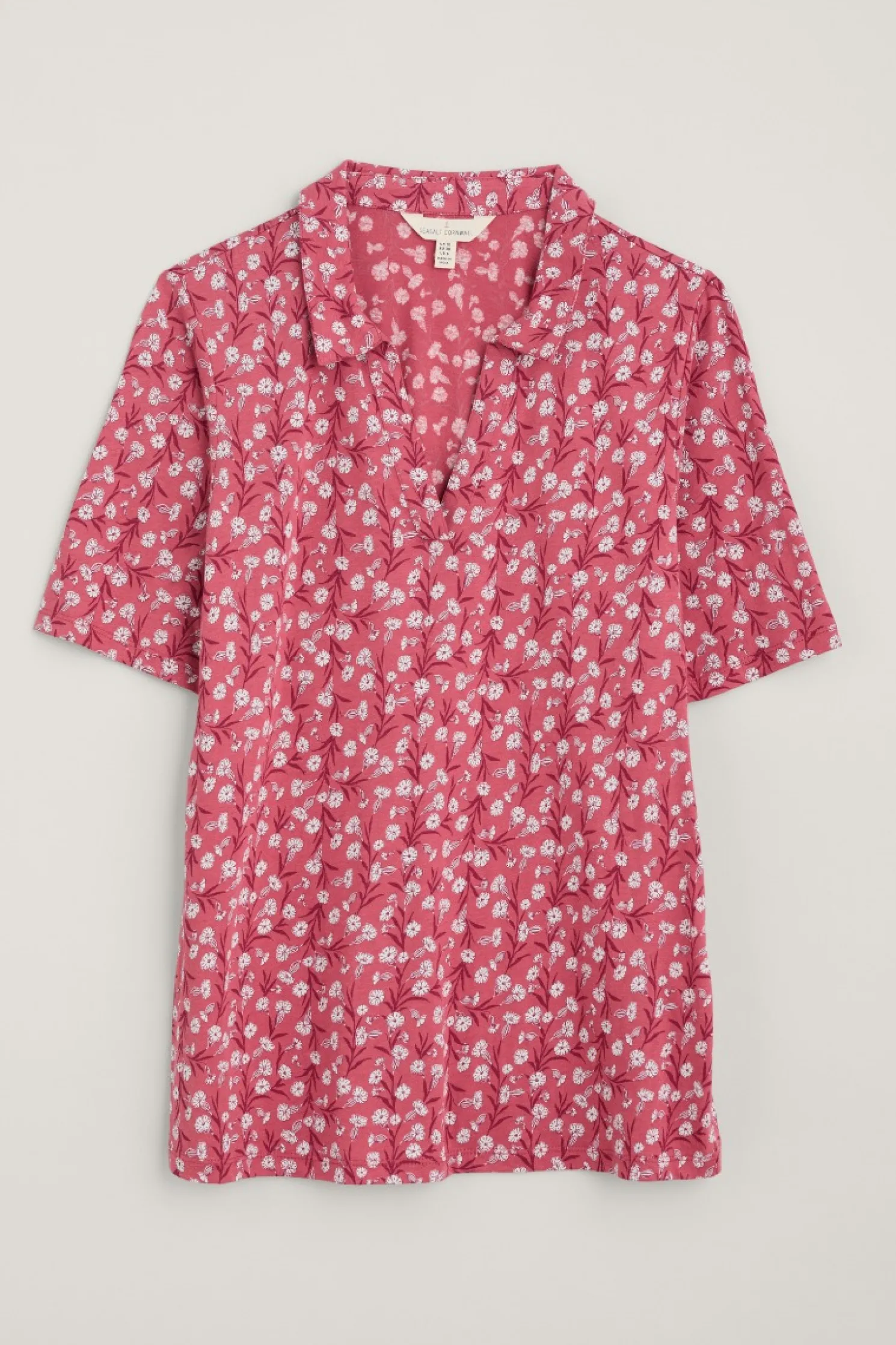 The Perfect Piece For Summer Getaways. We’Ll Pair The Easy Print On This Collared V-Neck Shirt With Plain Cropped Trousers Or Shorts. The Soft, Skimming Jersey Blend Means It’s As Cool And Comfortable As A T-Shirt.