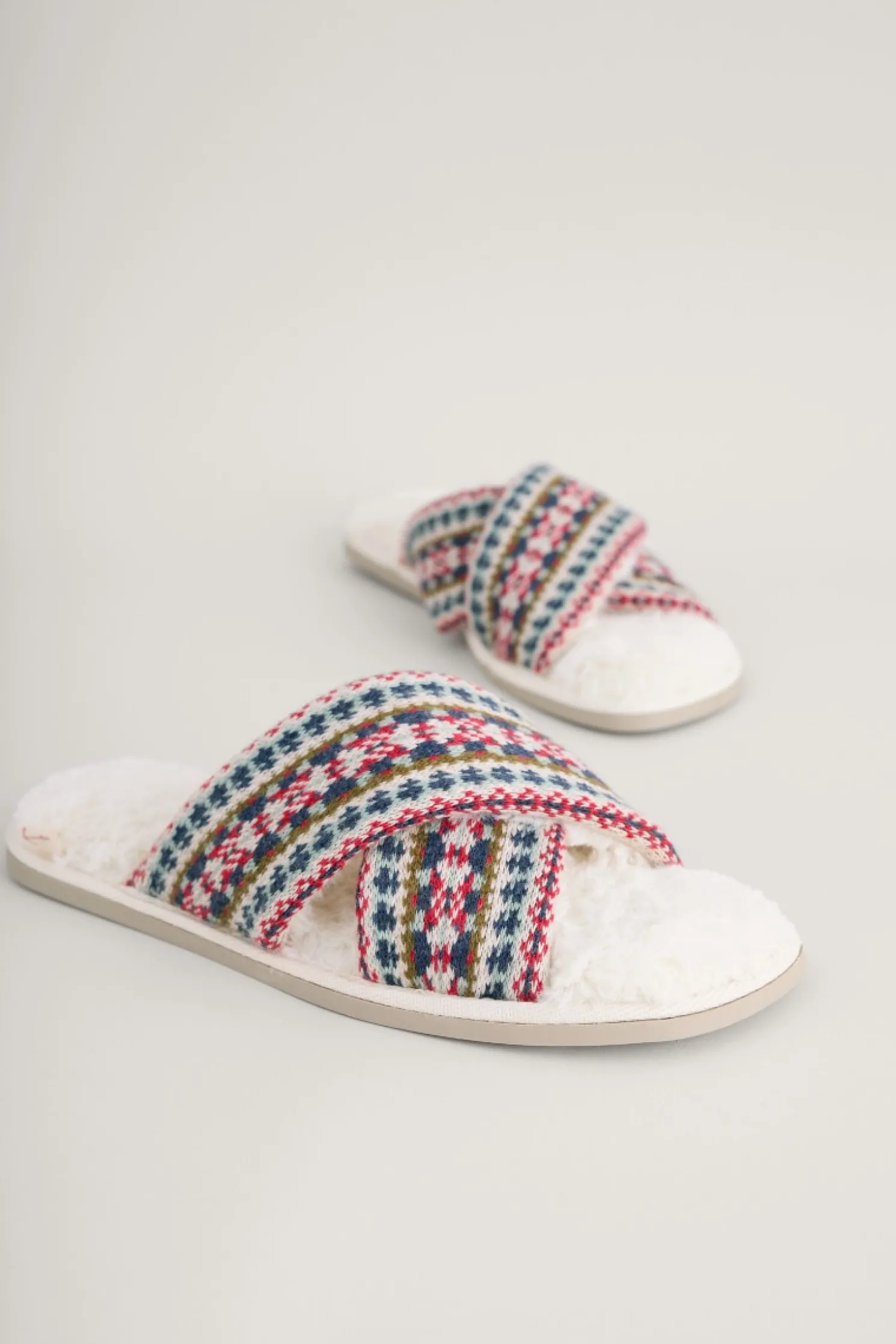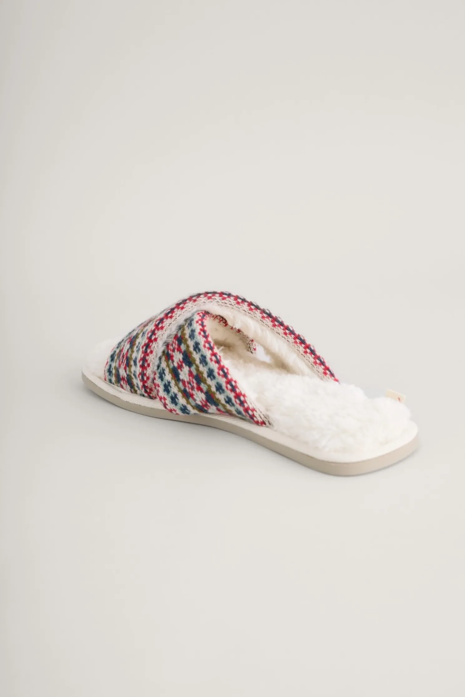 Slip-On Slippers With A Playful Knitted Pattern On The Crossover Top And Plush Lining Made From Recycled Fibres. The Flexible Sole Has A Light Grip To Keep Your Feet Cosy And Protected.