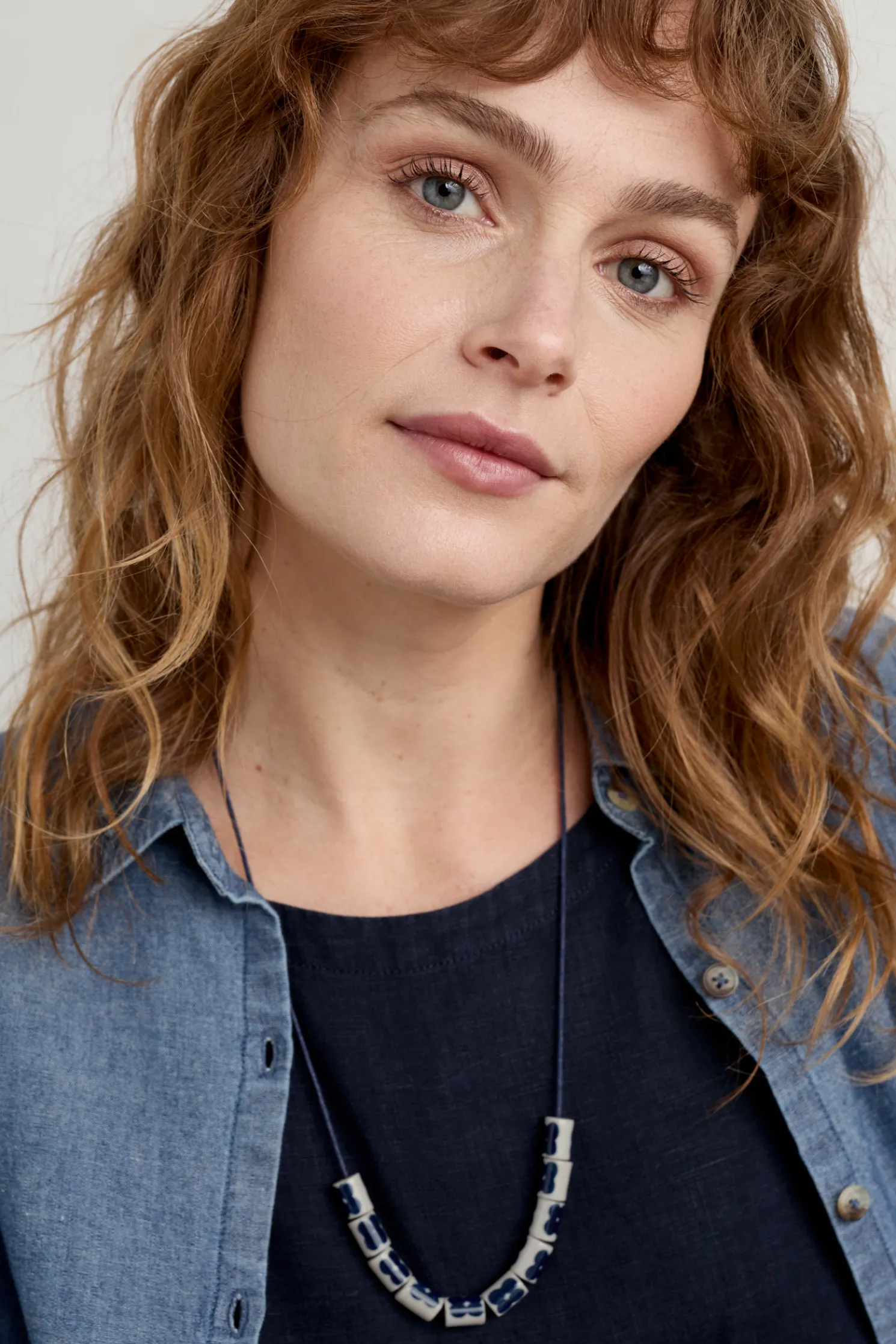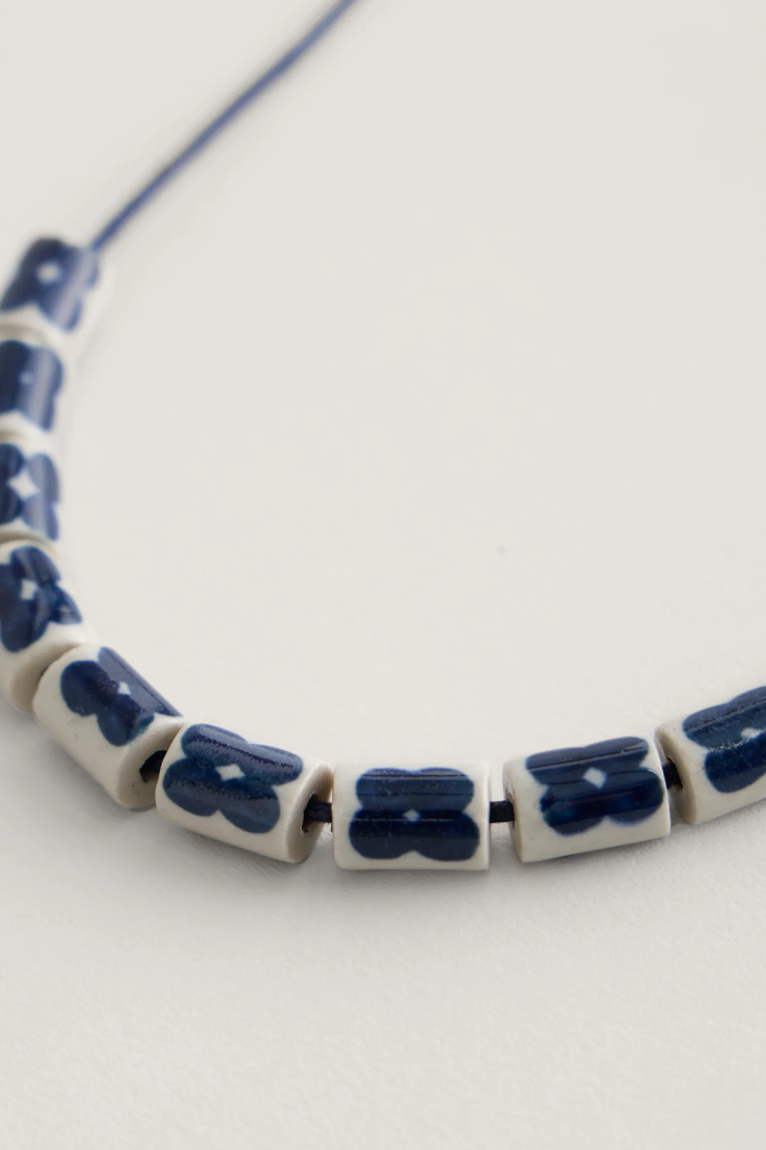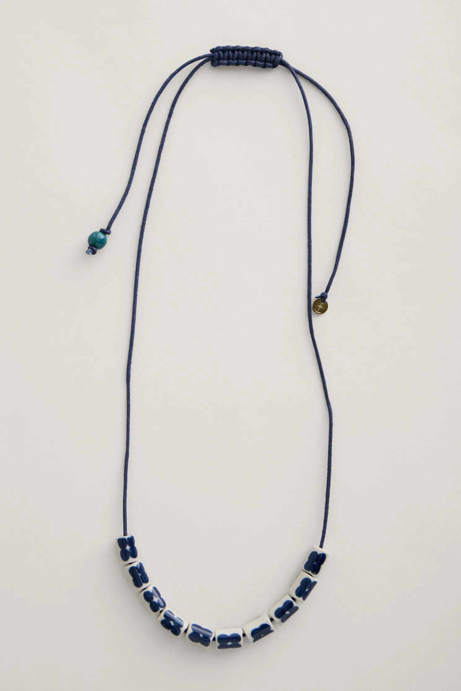 A Simple, But Impactful, Necklace. Ceramic Beads Stamped With Simple Four-Petal Flowers On An Adjustable Cotton Cord, So You Can Choose Your Perfect Length. A Lovely Piece To Add An Extra Special Touch To Every Day.