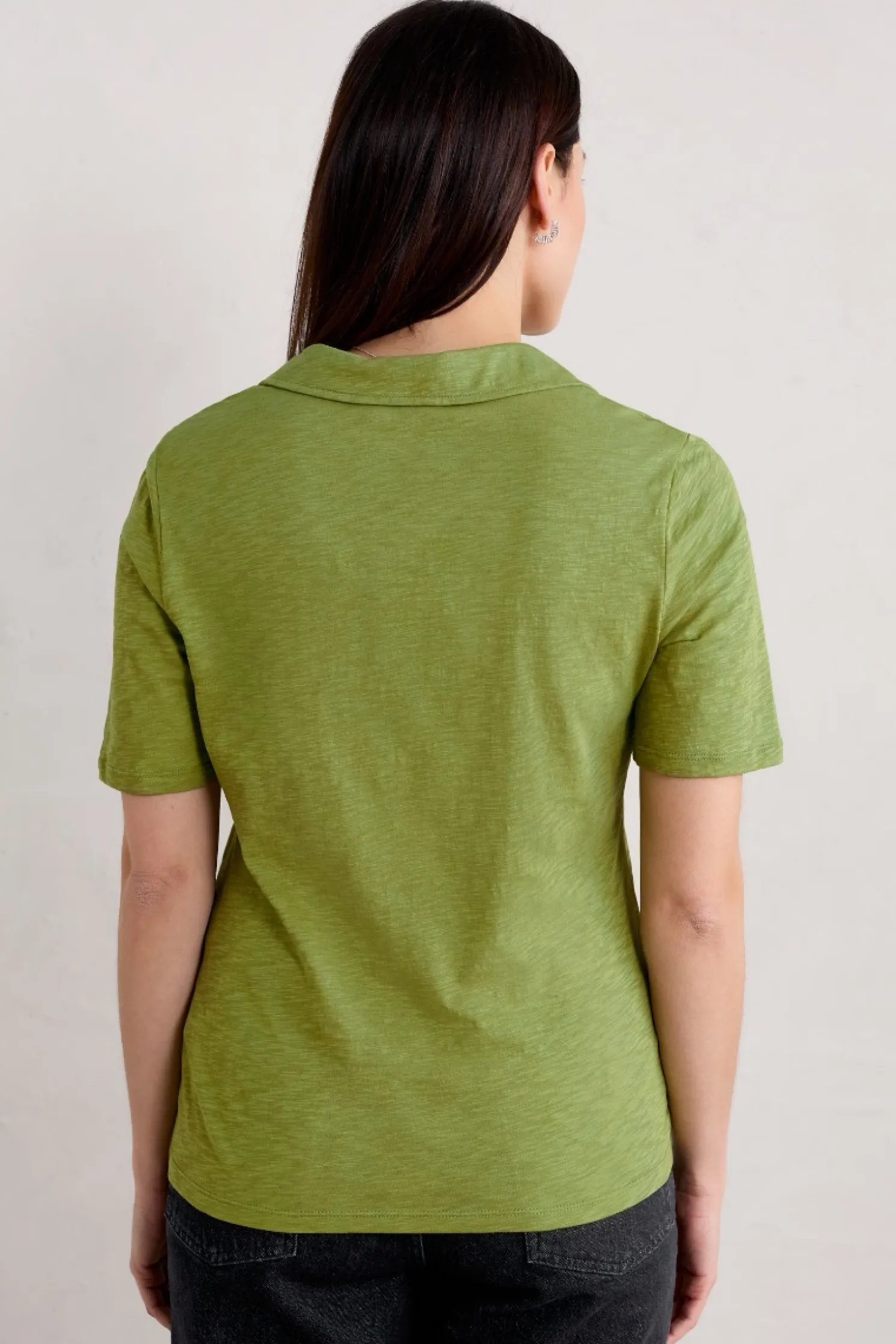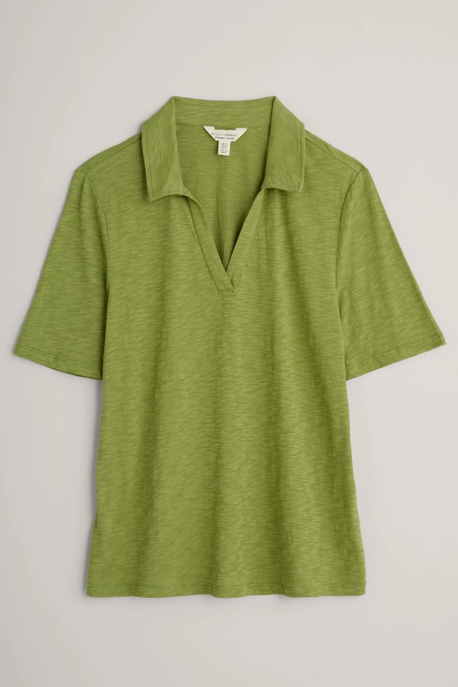 A Simple Skimming Shirt With Short Sleeves, Maritime-Inspired V-Neckline And A Soft Collar. Made From Organic Cotton Slub Which Gives A Lovely Texture To The Fabric.