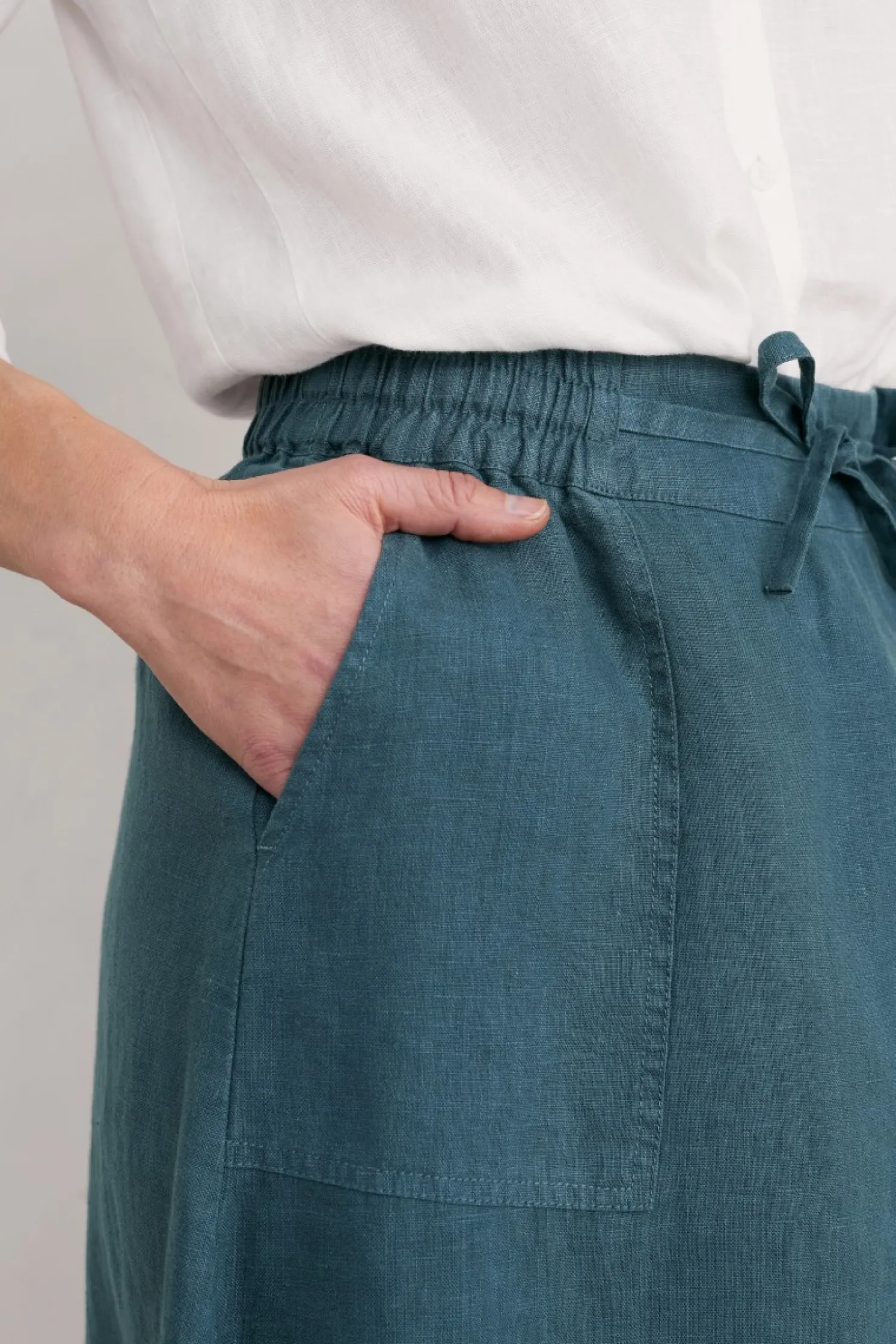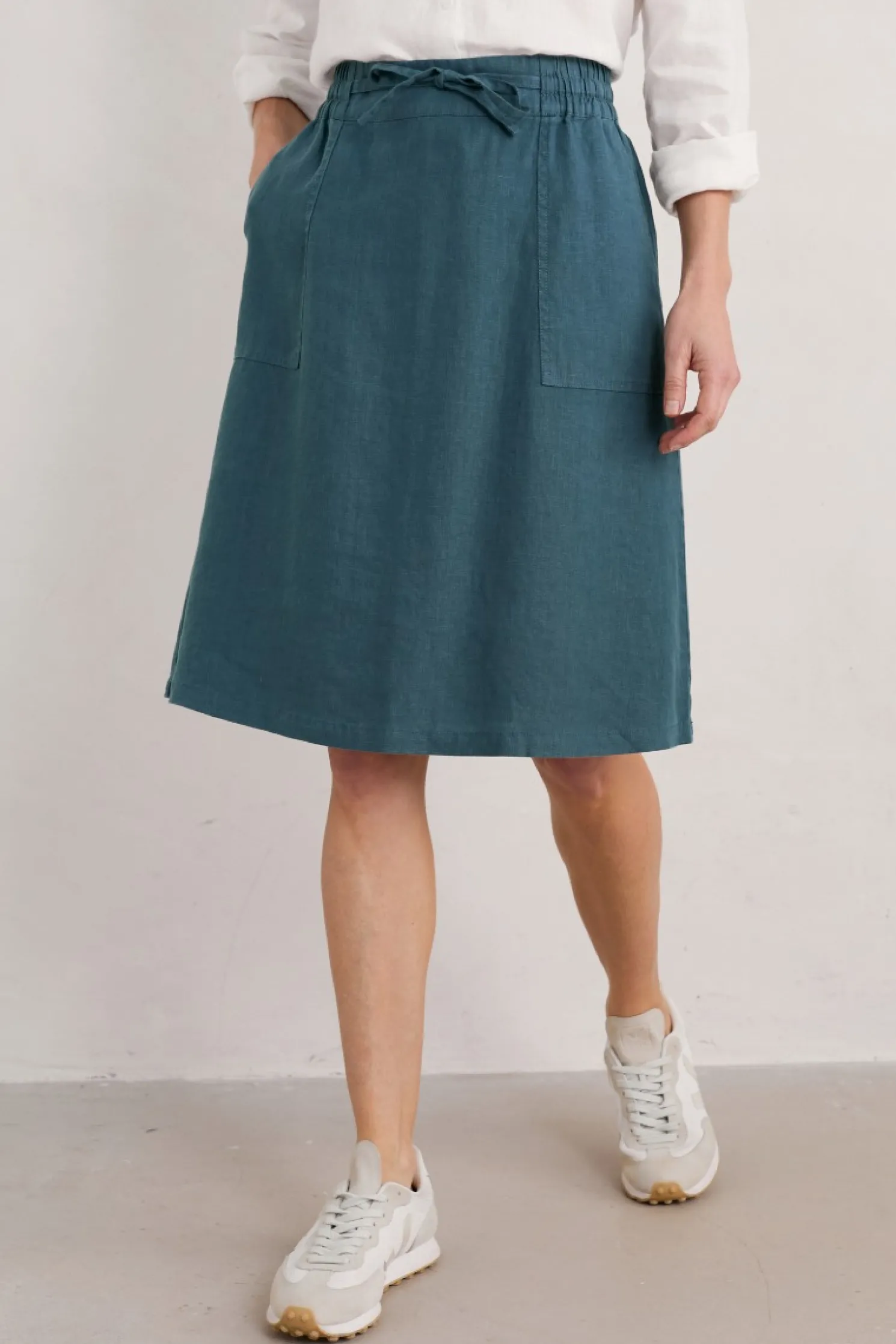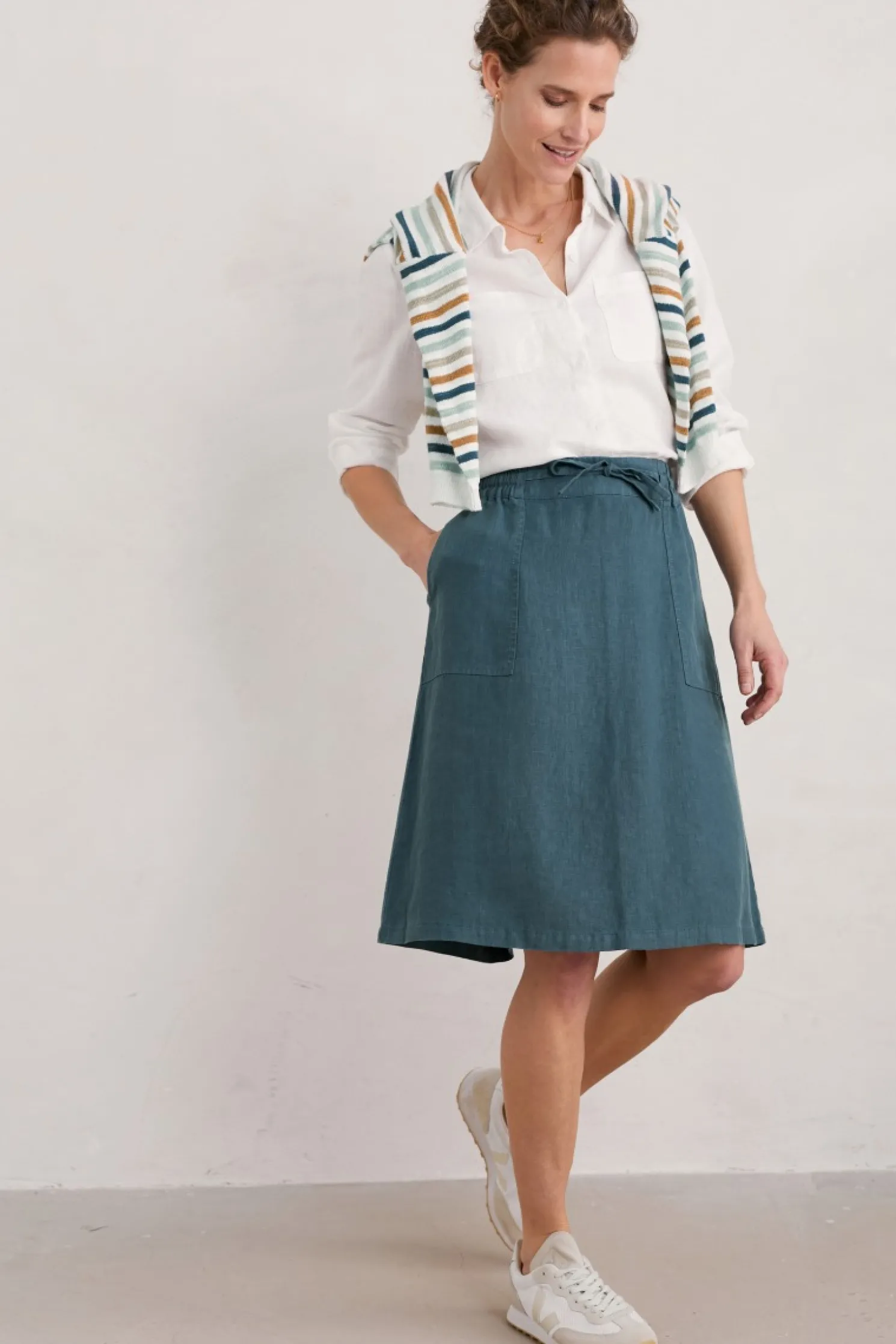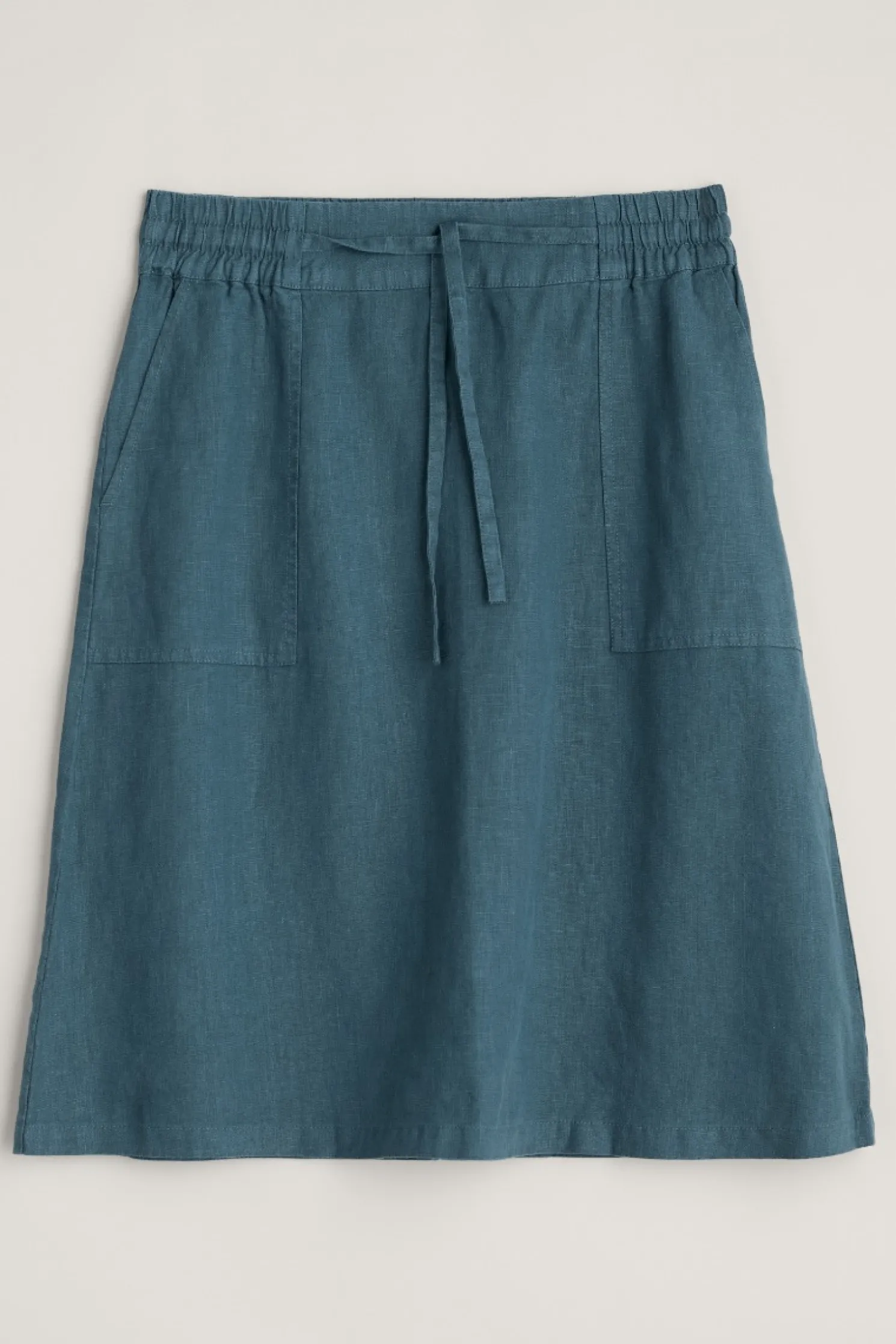 A Light And Airy Knee Length Linen Skirt With A Comfortable Elasticated Waistband And Large Patch Pockets. A Collection Of Garment-Dyed Shades With A Naturally Lived In Look That Gets Better With Every Wear.