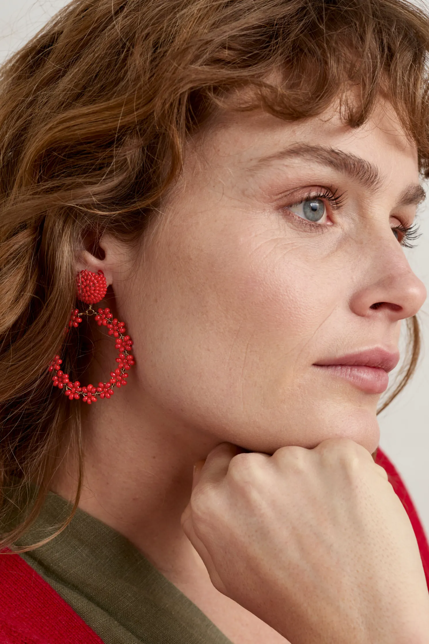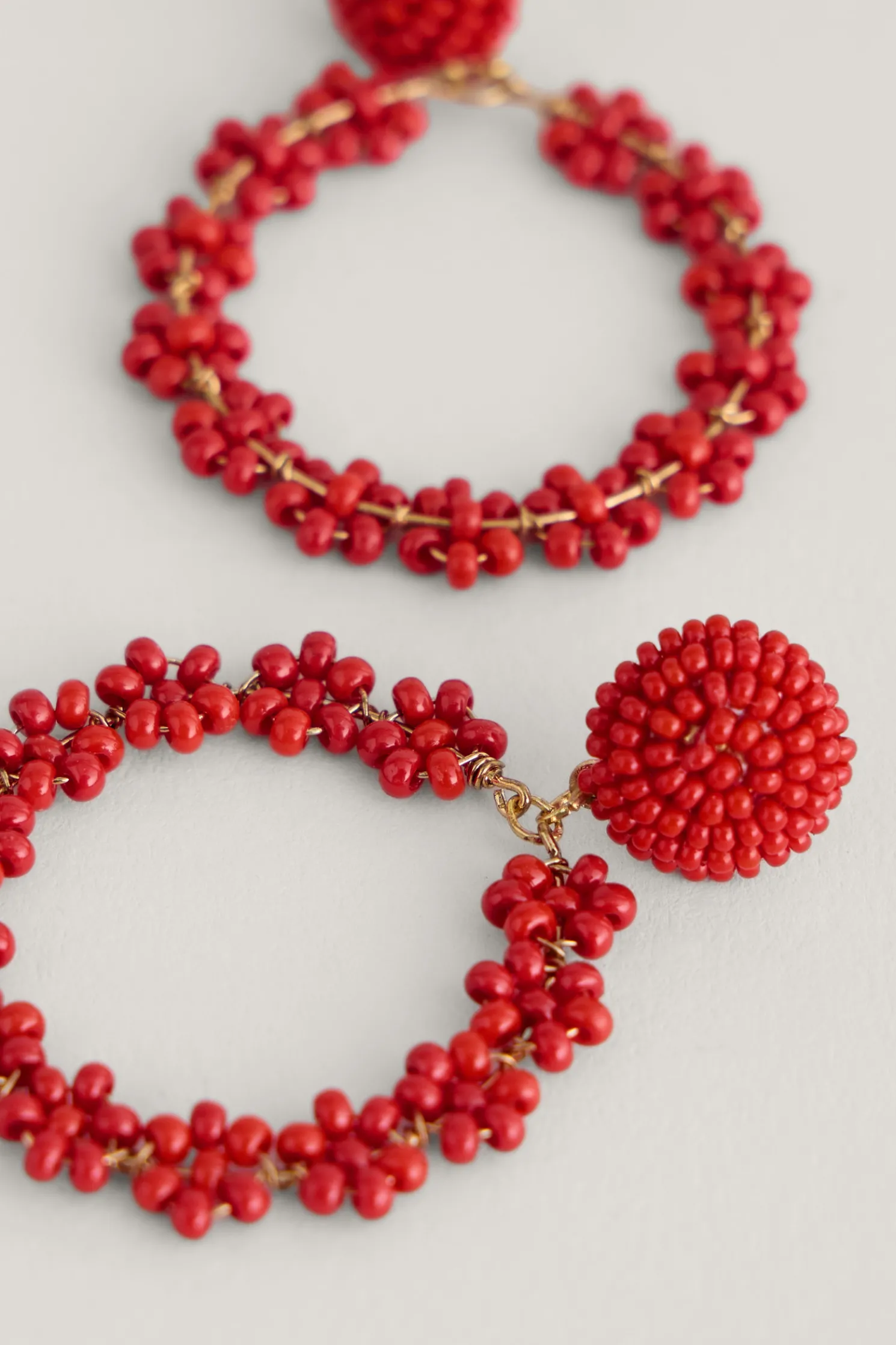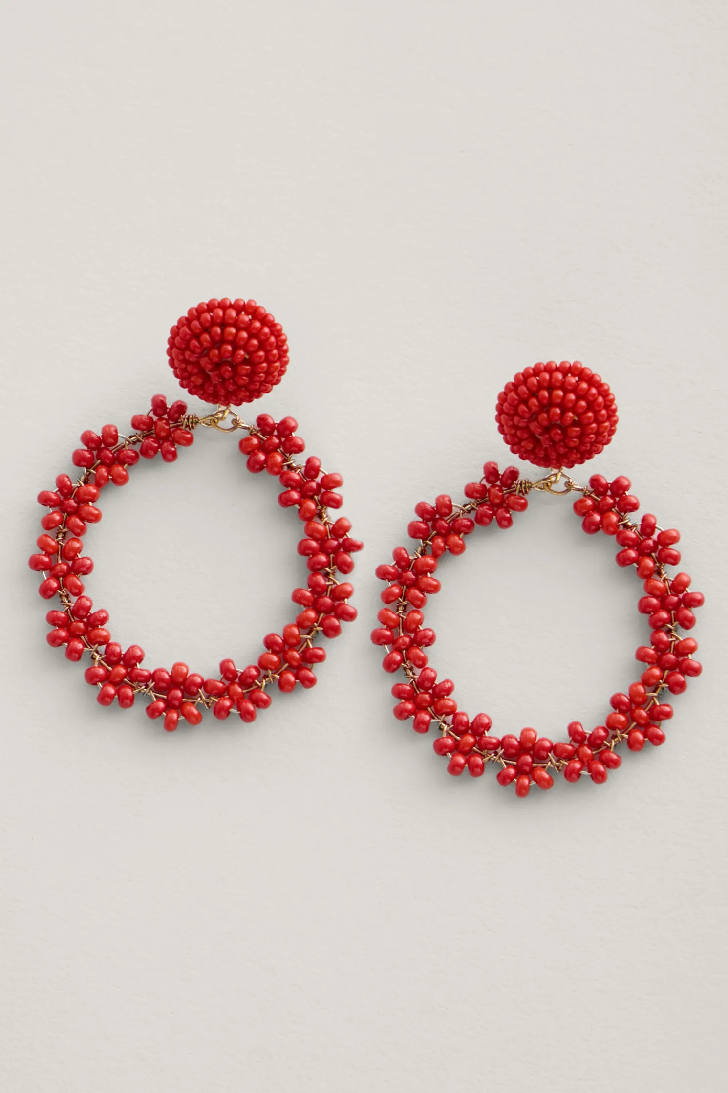 Stud Earrings With A Drop Hoop, Decorated With Bright Glass Beads Clustered In The Shape Of A Flower. We Love The Joyful Pop Of Colour This Gives To Outfits, And The Lovely Swaying Movement Of The Hoops.