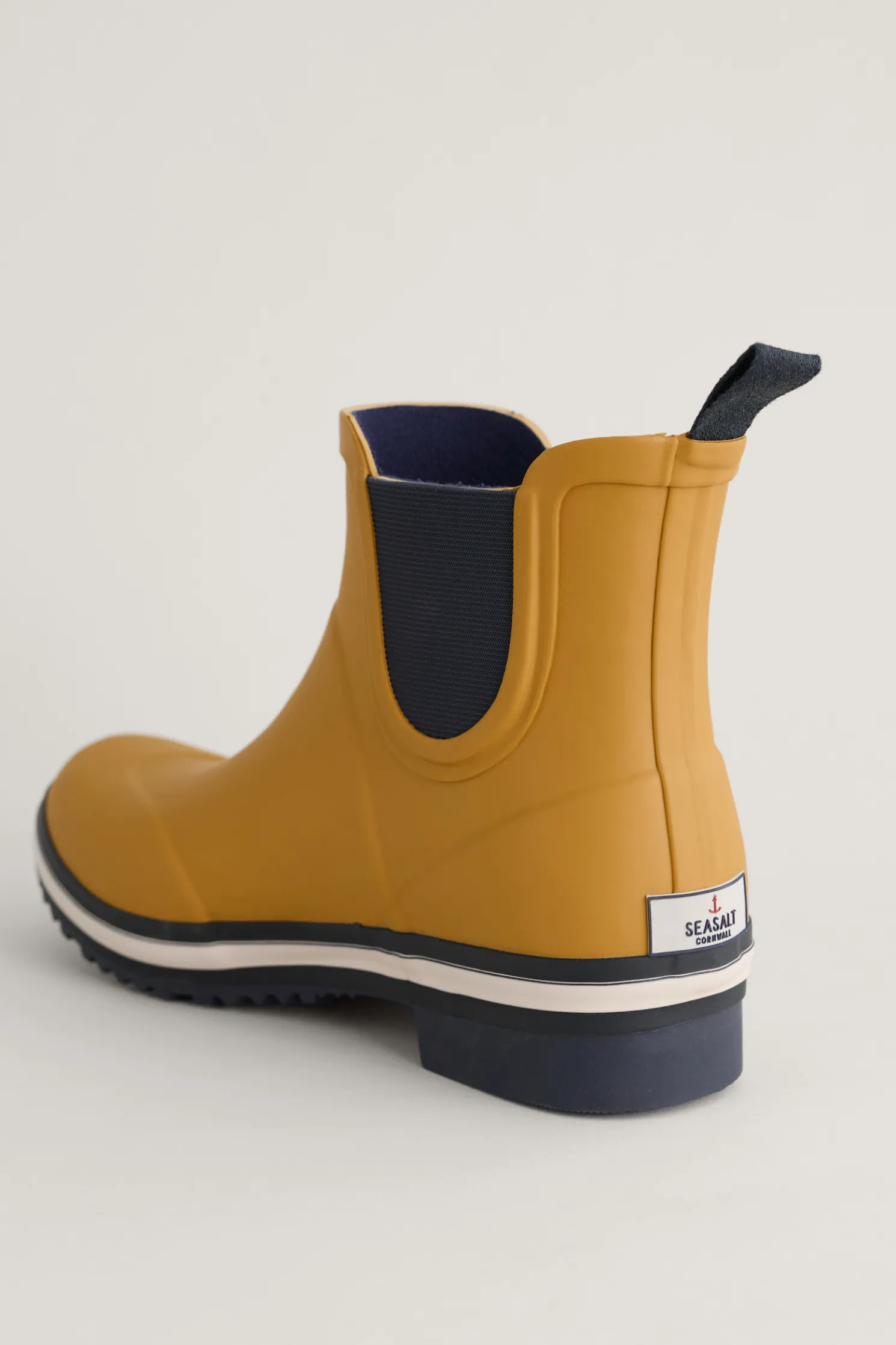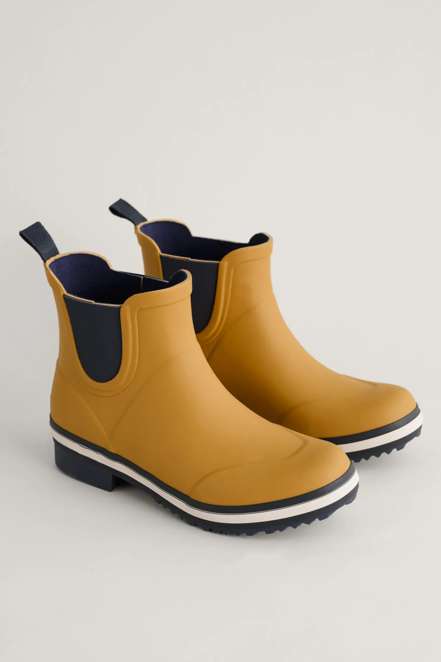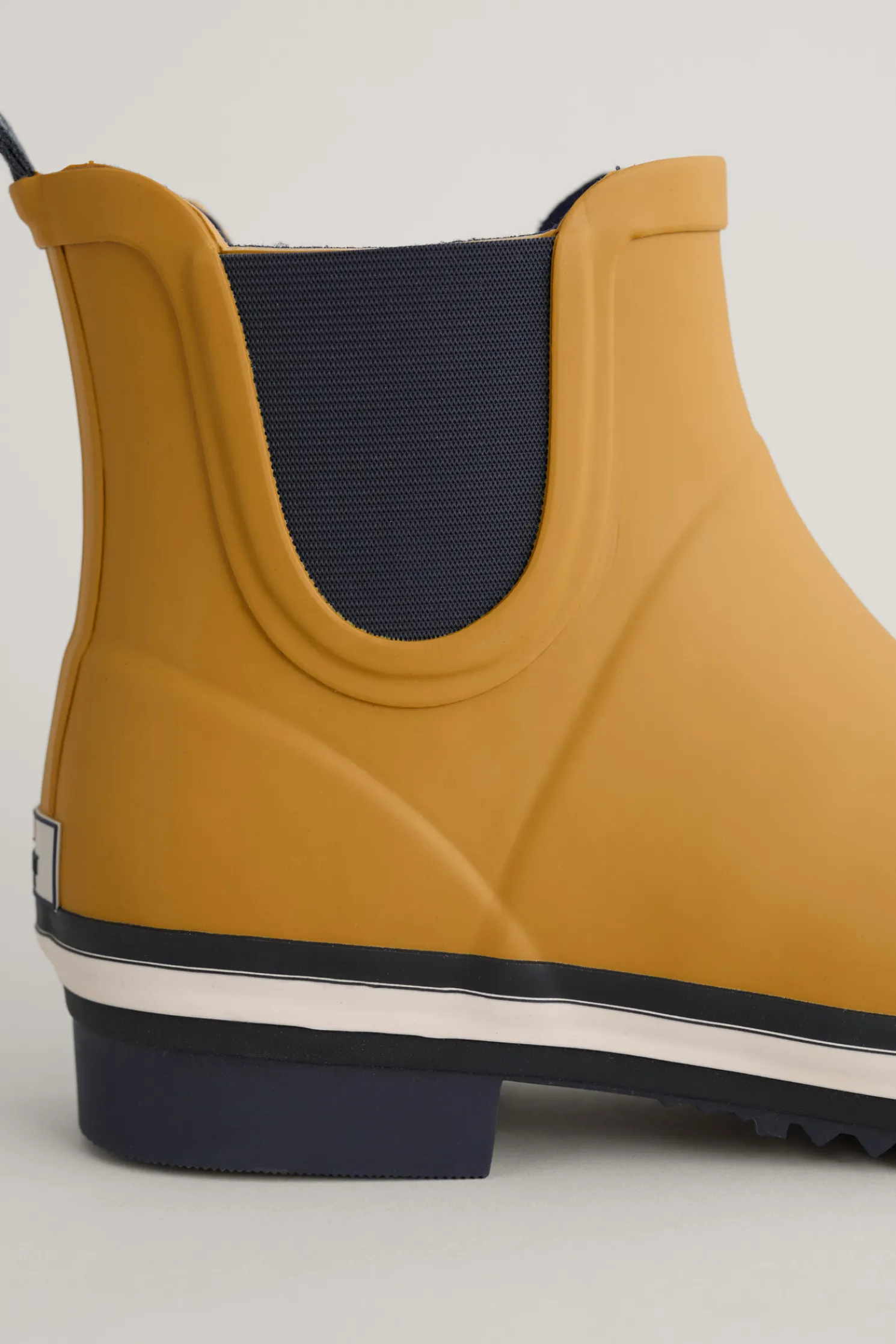 Chelsea-Style Short Welly Boots With A Comfortable Fit, Deep Insole And Easy-On Design. The Contrasting Elastic Panel, Pull Loop And Sole Stripe Add A Stylish Touch. The Grippy Tread Is Ready For Slippy Mud And Summer Storms.