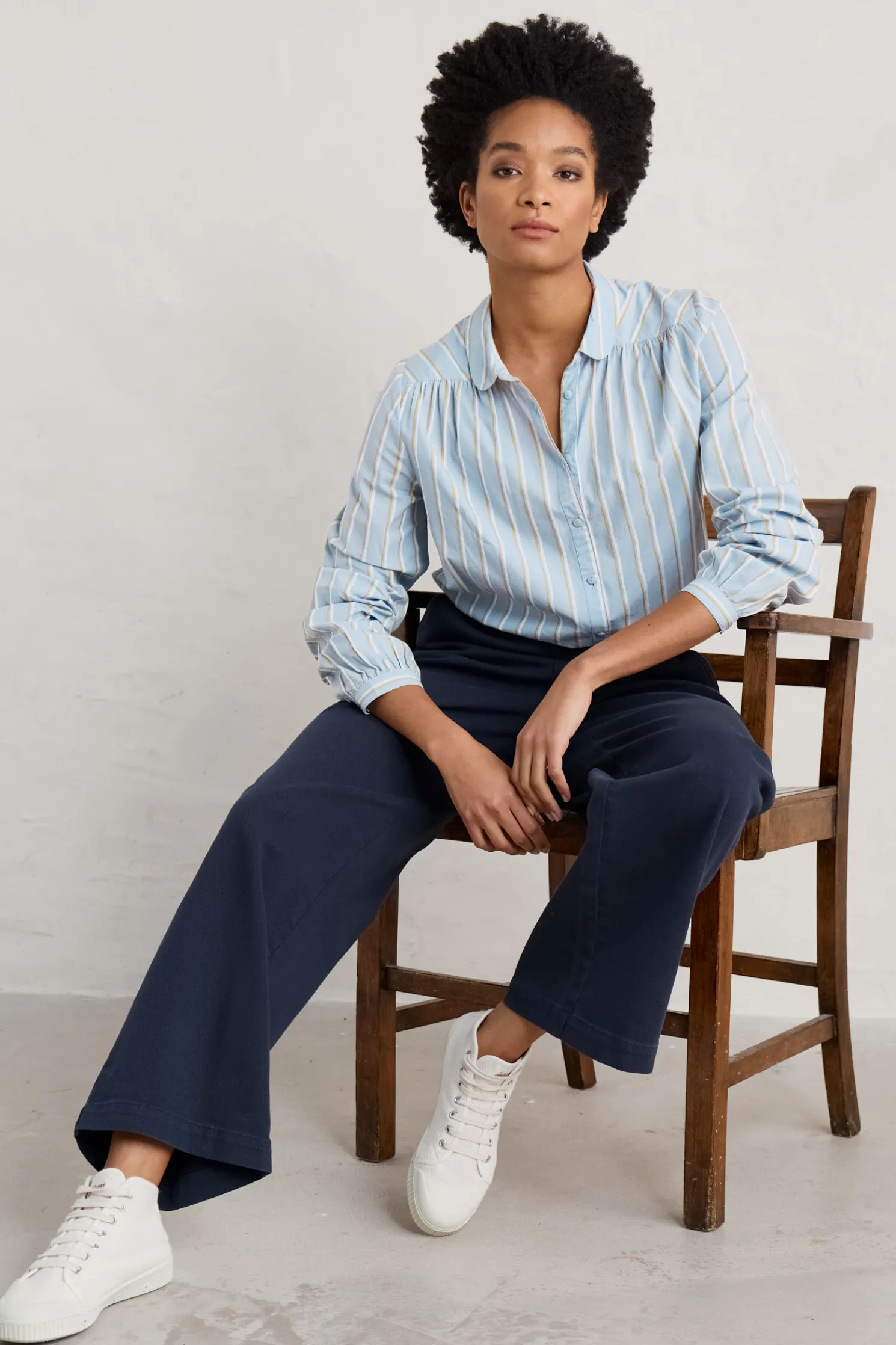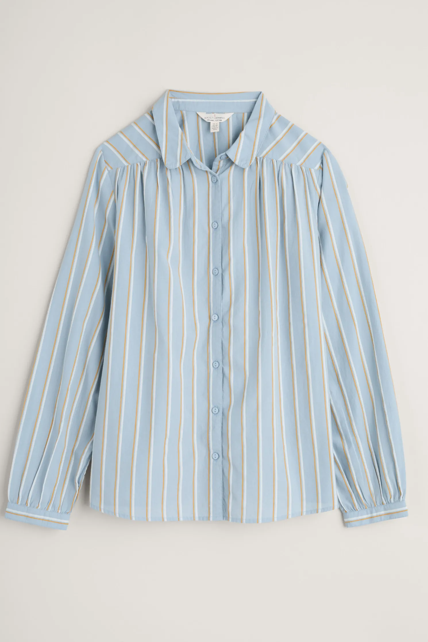 Little Gathers At The Yoke Give This Easy Shirt Its Skimming Shape, Which We Love Loose Over Trousers. It Has A Joyful Yarn-Dyed Stripe And Is Made From Organic Cotton.