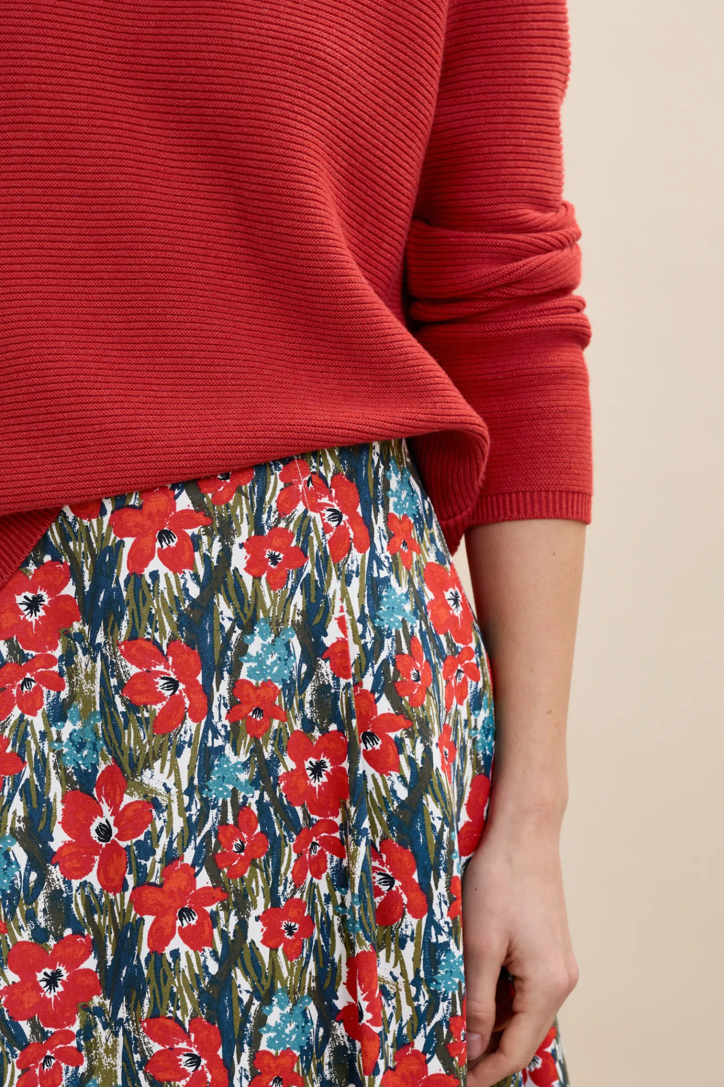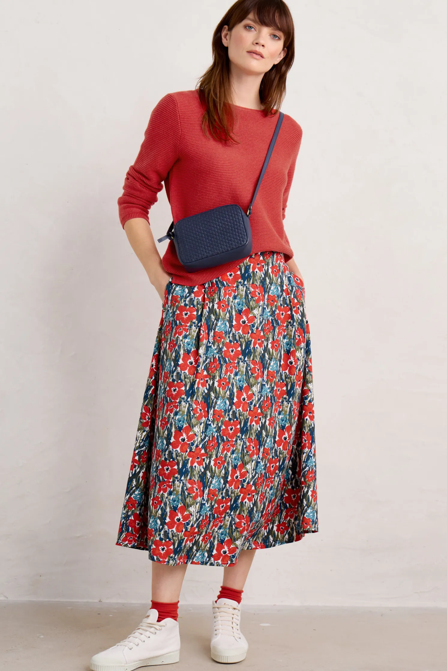 A Long Skirt With A Lovely Drape And A Classic A-Line Shape. The Perfect Piece For Adding A Pop Of Colourful Print On Grey Days, Or For Pairing With A Simple White T-Shirt When The Weather Warms Up.