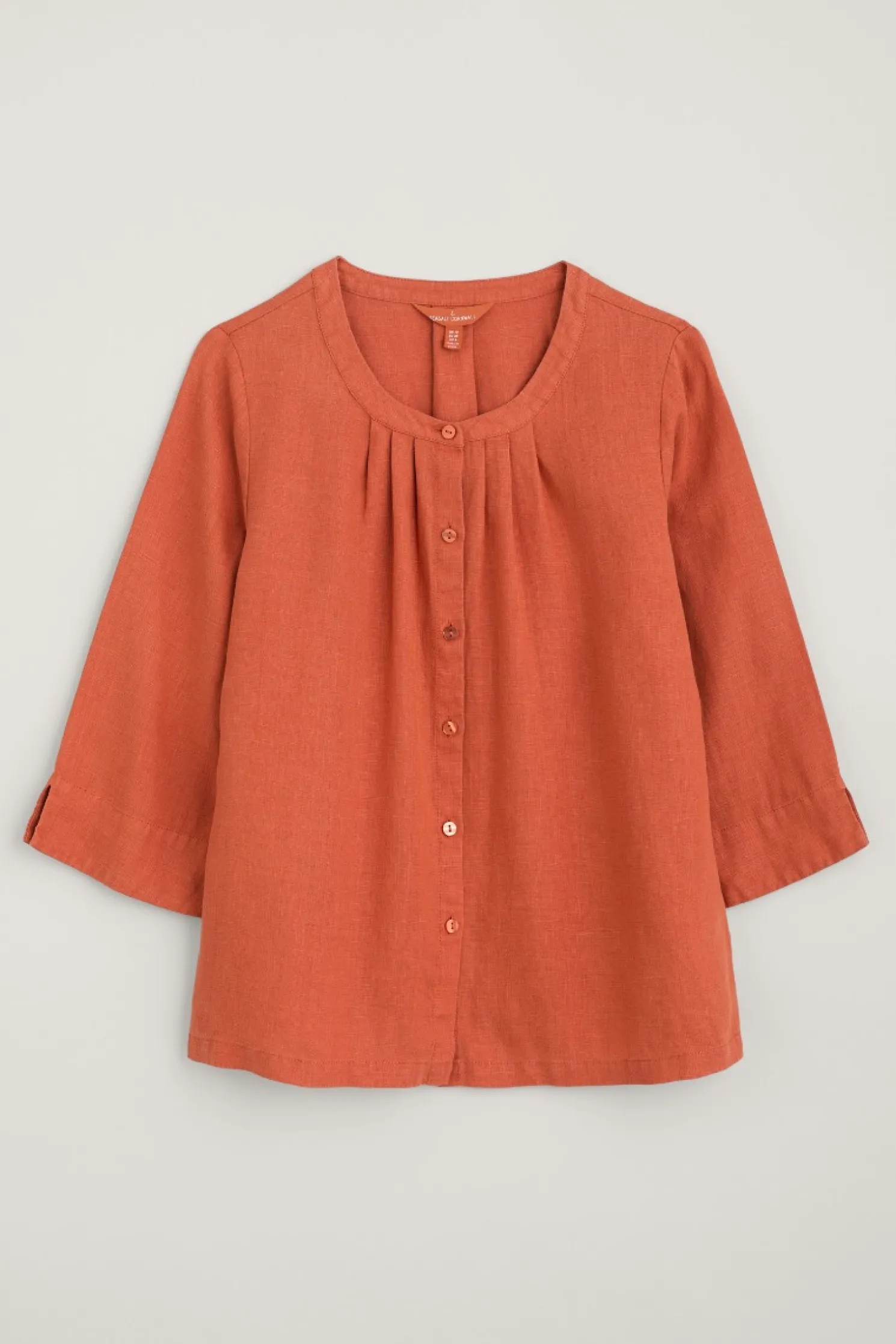 One Of Our Favourite, And Most Versatile, Layers For Summer: Wear As A Shirt, Tucked In Or Loose, Or Unbuttoned Over T-Shirts As A Lightweight Linen Cover-Up. Subtle Pintucks Under The Neckline Emphasise Its Easy, A-Line Fit.