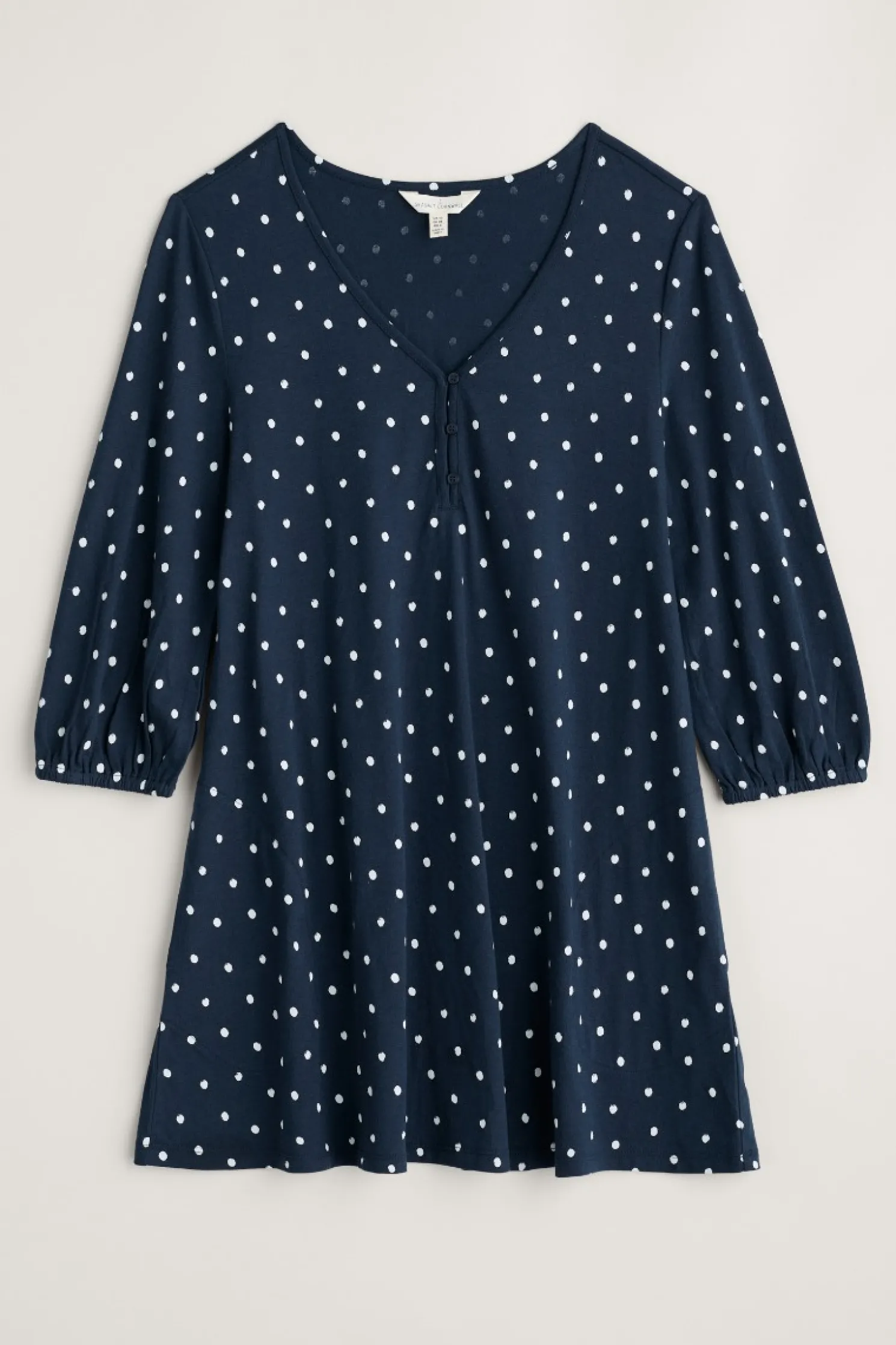 A Stylish V-Neck Tunic With Feminine 3/4 Blouson Sleeves. Crafted From Soft Jersey For A Beautiful Weight And Drape That Lends A Soft Swing To The Body. The Perfect Piece For Days When Comfort And Style Are Key.